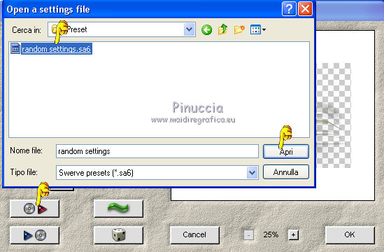 Clicca sull'icona con la freccia rossa e cerca, nella cartella in cui lo hai salvato, il preset random settings.sa6.