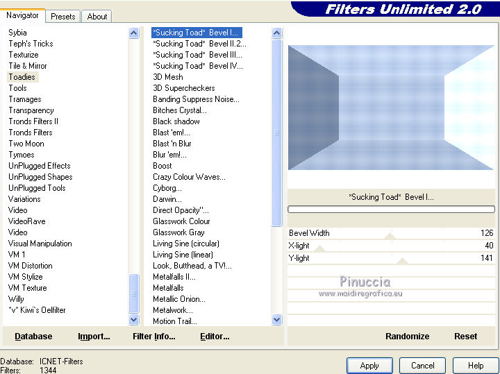 Effetti>Plugins>Filters Unlimited 2.0 - Toadies - Sucking Toad Bevel I.