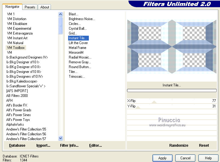 Effetti>Plugins>Filters Unlimited 2.0 - VM Toolbox - Instant Tile, con i settaggi standard.
