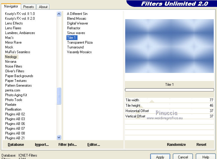 4. Effetti>Plugins>Filters Unlimited 2.0 - Neology - Tiler 1.