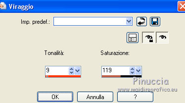 Regola>Tonalità e saturazione>Viraggio e trascrivi i valori annotati nelle rispettive caselle.
