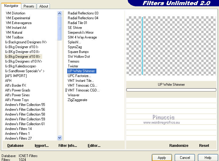 10. Effetti>Plugins>Filters Unlimited 2.0 - &<Bkg Designer sf10III> - UP White Shimmer.