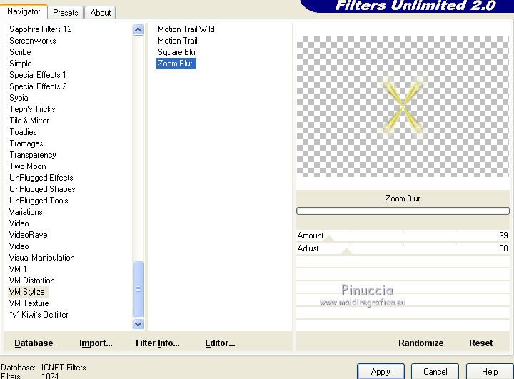 Effetti>Plugins>Filters Unlimited 2.0 - VM Stylize - Zoom blur, con i settaggi standard.