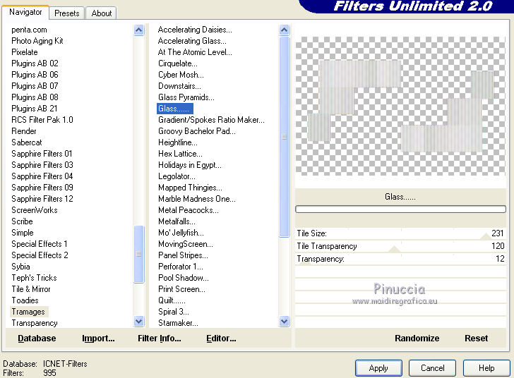 Effetti>Plugins>Filters Unlimited - Tramages - Glass.