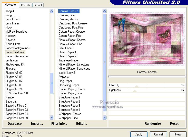 Effetti>Plugins>Filters Unlimited 2.0 - Paper textures - Canvas, Coarse.