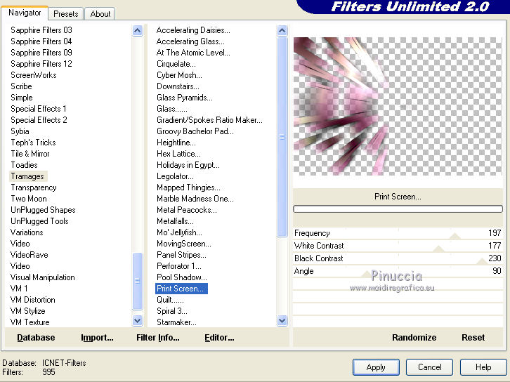Effetti>Plugins>Filters Unlimited 2.0 - Tramages - Print Screen.