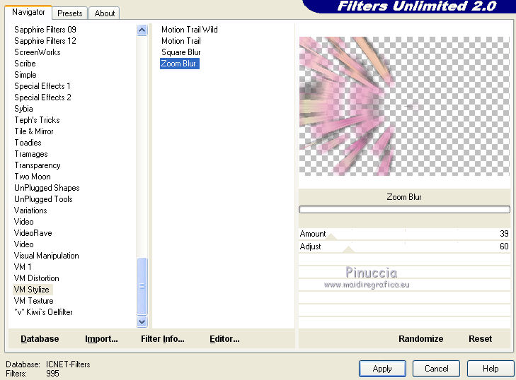 Effetti>Plugins>Filters Unlimited 2.0 - VM Stylize - Zoom Blur.