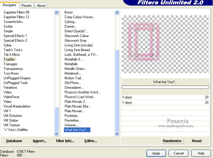 I filtri Toadies, Tramages e Simple si possono usare da soli o importati in Filters Unlimited