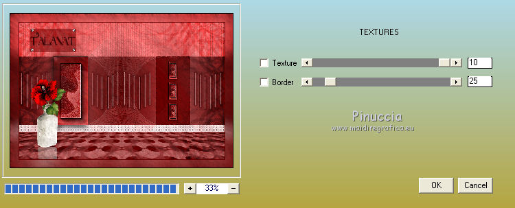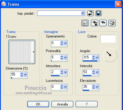 6. Effetti>Effetti di trama>Trama - seleziona la trama 13-cmv, con i seguenti settaggi.