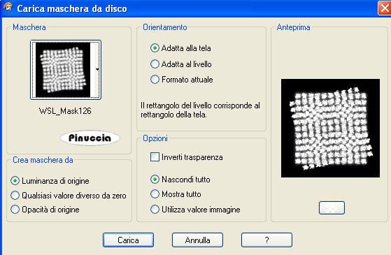 qui puoi trovare qualche risposta ai tuoi dubbi. Se l'argomento che ti interessa non è presente, ti prego di segnalarmelo. Questo tutorial è stato scritto con PSP X. Occorrente: Un tube a scelta. Il resto del materiale qui Il materiale scrap è di Bag of Scraps La maschera è di Chelle Metti la maschera nella Cartella maschere. Apri i tubes in PSP. Apri una nuova immagine trasparente 700 x 700 pixels, e riempila con il colore bianco.Livelli>Nuovo livello raster. Selezione>Seleziona tutto (Ctrl+A). Apri la carta scrap "Clarey_wisteria_paper5.png", e vai a Modifica>copia. Torna al tuo lavoro e vai a Modifica>Incolla nella selezione (ctrl + shift + L) Selezione>Deseleziona. Livelli>Carica/Salva maschera>Carica maschera da disco. Cerca e carica la maschera WSL_Mask126.jpg. ![]() Livelli>Unisci>Unisci gruppo. Livelli>Duplica. Apri "we are star", e vai a Modifica>copia. Torna al tuo lavoro e vai a Modifica>Incolla come nuovo livello. Non occorre spostarlo, è già correttamente posizionato. Apri "we are template", e vai a Modifica>copia. Torna al tuo lavoro e vai a Modifica>Incolla come nuovo livello. Non occcorre spostarlo, è già correttamente posizionato. Effetti>Effetti 3D>Sfalsa ombra, con i seguenti settaggi, colore #322f39: ![]() Adatta il colore dell'ombra al tuo tube, o usa il nero. Apri "we are wordart", e vai a Modifica>Copia. Torna al tuo lavoro e vai a Modifica>Incolla come nuovo livello. Anche questo è già correttamente posizionato. Non occorre spostarlo. Se stai usando un tube con altri colori, usa il viraggio: Regola>Tonalità e saturazione>Viraggio. sull'uso del viraggio vedi qui Apri il tuo tube e vai a Modifica>Copia. Torna al tuo lavoro e vai a Modifica>Incolla come nuovo livello. Sposta il tube nel modo migliore.Apri il tube della spilla "Clarey monomagic charms", e vai a Modifica>copia. Torna al tou lavoro e vai a Modifica>Incolla come nuovo livello. Immagine>Ridimensiona, 3 volte al 90%, tutti i livelli non selezionato, tre volte. ![]() Regola>Messa a fuoco>Metti a fuoco. Ripeti due volte Immagine>Ridimensiona, al 90%, tutti i livelli non selezionato. Regola>Messa a fuoco>Metti a fuoco. Posiziona la spilla a destra o a sinistra della maschera.Attiva lo strumento Selezione a mano libera , da punto a punto,e seleziona un pezzo della spilla. ![]() Premi sulla tastiera il tasto CANC. Effetti>Effetti 3D>Sfalsa ombra, con i seguenti settaggi, colore #322f39. ![]() anche qui puoi adattare il colore dell'ombra al tuo materiale, o usare il nero Livelli>Duplica. Immagine>Rifletti. Non dimenticare, se il tuo tube ha un copyright, di aggiungere il credito all'artista. Aggiungi il tuo nome e/o il tuo watermark e salva in formato jpg. ![]() Se hai problemi o dubbi, o trovi un link non funzionante, o anche soltanto per un saluto, scrivimi. 9 Maggio 2008 |
