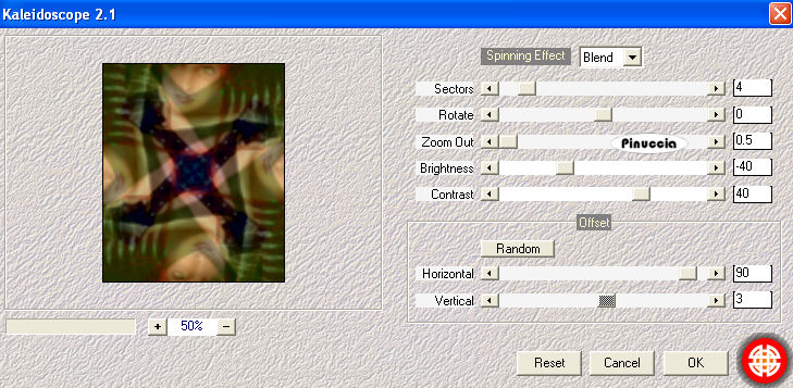 qui puoi trovare qualche risposta ai tuoi dubbi. Se l'argomento che ti interessa non è presente, ti prego di segnalarmelo. Per tradurre questo tutorial ho usato PSP X. Occorrente: un'immagine a scelta. Filtri: Mehdi Kaleidoscope qui FM Tile Tools qui Apri una nuova immagine trasparente 700 x 700 pixels. Apri la tua immagine, che non deve superare i 400 pixels di altezza. Duplica l'immagine usando sulla tastiera la combinazione di tasti shift(maiuscola)+D, minimizza la copia e continua a lavorare sull'originale. Effetti>Plugins>Medhi - Kaleidoscope: ![]() Modifica>Copia. Torna all'immagine trasparente e vai a Modifica>Incolla come nuovo livello. Sposta l'immagine in alto a destra.in modo che abbia all'incirca quattro blocchi di distanza dal bordo superiore e dal bordo a destra. ![]() Ancora Modifica>Incolla come nuovo livello (l'immagine è ancora in memoria). Sposta questa immagine sulla precedente un po' più in basso e a sinistra, come nel mio esempio.![]() Abbassa l'opacità di entrambi i livelli al 70%. Chiudi il livello inferiore dello sfondo trasparente e vai a Livelli>Unisci>Unisci visibile. Riapri e attiva il livello dello sfondo trasparente. Imposta il colore di primo piano con un colore scuro scelto dall'immagine e il colore di sfondo con un colore chiaro. Passa il colore di primo piano a Gradiente di primo piano/sfondo, stile radiale, con i seguenti settaggi: ![]() Riempi il livello con il gradiente.Attiva il livello superiore. Effetti>Effetti 3D>sfalsa ombra, con i seguenti settaggi, colore nero: ![]() Effetti>Plugins>FM Tile Tools - Blend Emboss, con i settaggi standard. ![]() se necessario, ripeti l'effetto Sempre posizionato sul livello superiore, vai a Modifica>Taglia, e poi Modifica>Incolla come nuovo livello. Questo posizionerà l'immagine esattamente al centro della tela. Livelli>Unisci>Unisci tutto. Attiva l'immagine che hai messo da parte all'inizio del tutorial. Immagine>Ridimensiona, al 70%, tutti i livelli selezionato. Immagine>Aggiungi bordatura, 1 pixel, simmetriche, con il colore chiaro. Immagine>Aggiung bordatura, 2 pixels, simmetriche, con il colore scuro. Modifica>Copia. Torna al tuo lavoro e vai a Modifica>Incolla come nuovo livello. Posiziona l'immagine sullo sfondo (vedi il mio esempio).Effetti>Effetti 3D>sfalsa ombra, con i seguenti settaggi, colore nero. ![]() Attiva lo strumento Ritaglio ![]() e ritaglia l'immagine lasciando pressappoco un bordo da un centimetro. ![]() Livelli>Unisci>Unisci tutto. Immagine>Ridimensiona, a 450 pixels di altezza. Selezione>Seleziona tutto. Selezione>Modifica>Contrai - 3 pixels. Effetti>Effetti 3D>Scalpello, con i seguenti settaggi, con il colore scuro: ![]() Selezione>Deseleziona. Attiva lo strumento Testo scegli un font,e aggiungi un testo all'immagine. Effetti>Effetti 3D>Sfalsa ombra, con i seguenti settaggi, colore nero: ![]() Livelli>Unisci>Unisci tutto e salva in formato jpg. Se hai problemi o dubbi, o trovi un link non funzionante, o anche soltanto per un saluto, scrivimi. 7 Gennaio 2009 |