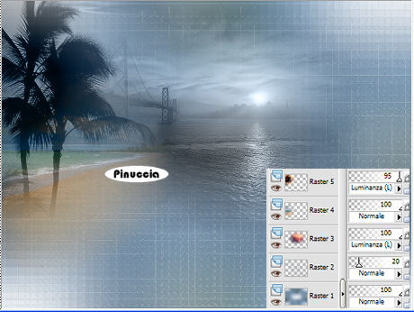 qui puoi trovare qualche risposta ai tuoi dubbi. Se l'argomento che ti interessa non è presente, ti prego di segnalarmelo. Questo tutorial è stato scritto con PSP XI. Per tradurlo, l'ho eseguito con PSP X. Occorrente: Materiale qui Se intendi condividere i tubes, mantienili al loro stato originale. Filtro Graphics Plus qui Nello zip trovi i codici dei colori utilizzati nel tutorial. ![]() Apri tutti i tubes in PSP. Comincia con attivare "Azyzam-beachwalk-background". Questa sarà la base del tuo lavoro. Attiva "Azyzam-Beachwalk-Overlay" e vai a Modifica>Copia. Torna allo sfondo e vai a Modifica>Incolla come nuovo livello. Abbassa l'opacità di questo livello al 20%. Attiva "Azyzam Heavensunset" e vai a Modifica>Copia. Torna al tuo lavoro e vai a Modifica>Incolla come nuovo livello. Spostalo un po' in alto,e cambia la modalità di miscelatura di questo livello in Luminanza (esistente). ![]() Attiva "Azyzam-beach" e vai a Modifica>Copia. Torna al tuo lavoro e vai a Modifica>Incolla come nuovo livello. Spostalo a sinistra, contro il bordo.Attiva "Azyzam-palmtree" e vai a Modifica>Copia. Torna al tuo lavoro e vai a Modifica>Incolla come nuovo livello. Immagine>Rifletti. Spostalo a sinistra, verso l'angolo superiore.Cambia la modalità di miscelatura di questo livello in Luminanza (esistente), e abbassa l'opacità al 95%. ![]() Attiva "Azyzam-clouds" e vai a Modifica>Copia. Torna al tuo lavoro e vai a Modifica>Incolla come nuovo livello. Spostalo in alto, vedi il mio esempio.Attiva "Azyzam-Natasha-Bedingfield003" e vai a Modifica>Copia. Torna al tuo lavoro e vai a Modifica>Incolla come nuovo livello. Immagine>Rifletti. Spostalo a destra, contro il bordo.![]() controlla che tutto sia al posto giusto. Il bordo. Imposta questi colori nella paletta dei materiali, non ha importanza quale come colore di sfondo o come colore di primo piano. ![]() Per aggiungere velocemente i bordi con questi colori, vedi qui Immagine>Aggiungi bordatura, 2 pixels, simmetriche, con il colore #768ca0. Immagine>Aggiungi bordatura, 10 pixels, simmetriche, con il colore #aac0d5. Seleziona questo bordo con la bacchetta magica ![]() ![]() Effetti>Plugins>Graphics Plus - Cross Shadow, con i settaggi standard. ![]() Selezione>Deseleziona. Immagine>Aggiungi bordatura, 2 pixels, simmetriche, con il colore #768ca0. Immagine>Aggiungi bordatura, 50 pixels, simmetriche, con il colore #aac0d5. Seleziona questo bordo con la bacchetta magica ![]() ![]() Attiva "Azyzam-Seashell-border", e vai a Modifica>Copia. Torna al tuo lavoro e vai a Modifica>Incolla nella selezione. Selezione>Deseleziona. Immagine>Aggiungi bordatura, 2 pixels, simmetriche, con il colore #768ca0. Immagine>Aggiungi bordatura, 10 pixels, simmetriche, con il colore #aac0d5. Seleziona questo bordo con la bacchetta magica ![]() ![]() Effetti>Plugins>Graphics Plus - Cross Shadow, con i settaggi standard. Selezione>Deseleziona. Immagine>Aggiungi bordatura, 2 pixels, simmetriche con il colore #768ca0. Attiva "Azyzam-Beack walk - word art" e vai a Modifica>Copia. Torna al tuo lavoro e vai a Modifica>Incolla come nuovo livello. Sposta il testo come preferisci.Se vuoi, puoi scrivere un testo a tua scelta. Aggiungi il tuo nome e/o il tuo watermark e salva in formato jpg. ![]() Se hai problemi o dubbi, o trovi un link non funzionante, o anche soltanto per un saluto, scrivimi. 10 Luglio 2007 |