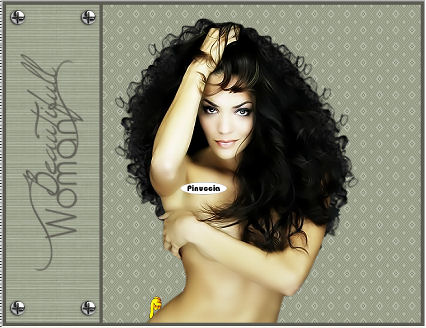 qui puoi trovare qualche risposta ai tuoi dubbi. Se l'argomento che ti interessa non è presente, ti prego di segnalarmelo. Occorrente: Materiale qui Se vuoi condividere i tubes, per favore lascia intatto il livello del copyright. Apri i tubes in PSP. Apri il file di sfondo "Beautiful woman background". Questa sarà la tua area di lavoro. Livelli>Nuovo livello raster. Selezione>Seleziona tutto (Ctrl+A). Riempi con il colore #5c5b52.Selezione>Modifica>Contrai, di 5 pixels. Premi sulla tastiera il tasto CANC. ![]() Selezione>Nessuna selezione. Apri "Beautiful woman paper" e vai a Modifica>Copia. Torna al tuo lavoro e vai a Modifica>Incolla>Incolla come nuovo livello. Spostalo completamente contro il bordo a destra.Fai in modo che la larghezza della linea a destra sia esattamente uguale alle altre. ![]() Apri il tube Beautiful woman tekst e vai a Modifica>Copia. Torna al tuo lavoro e vai a Modifica>Incolla>Incolla come nuovo livello. Spostalo nella striscia a sinistra, al centro.Apri "Beautiful woman buttons" e vai a Modifica>Copia. Torna al tuo lavoro e vai a Modifica>Incolla>Incolla come nuovo livello. Sposta i bottoni a sinistra del testo.Livelli>Duplica. Sposta i bottoni a destra del testo.![]() La sezione a sinistra è finita. Adesso occupiamoci della sezione a destra. Apri il tube di Marif 2006_novembre_lady0115. Posizionati sul livello del tube e vai a Modifica>Copia. Torna al tuo lavoro e vai a Modifica>Incolla>Incolla come nuovo livello. Spostalo sulla destra un po' in basso.Nella paletta dei livelli sposta il livello raster 2 completamente in alto, sopra il tube della donna: ![]() Sposta il tube della donna in basso in modo che il pezzetto di slip non sia visibile. ![]() Lascia attivo il livello del tube della donna. Apri "Beautiful woman paper 2" e vai a Modifica>Copia. Torna al tuo lavoro e vai a Modifica>Incolla>Incolla come nuovo livello. Spostalo a destra, come nell'esempio:![]() Apri il tube "Beautiful woman blocks" e vai a Modifica>Copia. Torna al tuo lavoro e vai a Modifica>Incolla>Incolla come nuovo livello. Spostalo a destra in modo che i bordi combacino perfettamente con la cornice precedente.![]() Apri "Beautiful woman ribbon" e vai a Modifica>Copia. Torna al tuo lavoro e vai a Modifica>Incolla>Incolla come nuovo livello. Sposta il nastro in alto in modo che la parte destra si trovi di fronte ai piccoli cubetti.![]() Apri "Beautiful woman stitch" e vai a Modifica>Copia. Torna al tuo lavoro e vai a Modifica>Incolla>Incolla come nuovo livello. Sposta la cucitura esattamente sopra il nastro.Livelli>Unisci>Unisci giù. Livelli>Duplica. Immagine>Capovolgi e avrai il secondo nastro esattamente dove deve stare. Non occorre spostarlo. Apri "Beautiful woman rope" e vai a Modifica>Copia. Torna al tuo lavoro e vai a Modifica>Incolla>Incolla come nuovo livello. Sposta la corda in alto a destra in modo che il passante superiore stia esattamente sopra il livello della cucitura.![]() Livelli>Duplica. Immagine>Capovolgi e il tube sarà esattamente al suo posto. Apri nuovamente "Beautiful woman buttons" e vai a Modifica>Copia. Torna al tuo lavoro e vai a Modifica>Incolla>Incolla come nuovo livello. Sposta il tube in alto, vedi l'esempio finale.Livelli>Duplica. Sposta i bottoni in basso.Apri "Beautiful woman bow" e vai a Modifica>Copia. Torna al tuo lavoro e vai a Modifica>Incolla>Incolla come nuovo livello. Sposta il fiocco nell'angolo in alto a destra.Aggiungi il tuo watermark o il tuo nome e salva in formato jpg. ![]() Se hai problemi o dubbi, o trovi un link non funzionante, o anche soltanto per un saluto, scrivimi. 6 Febbraio 2007 |