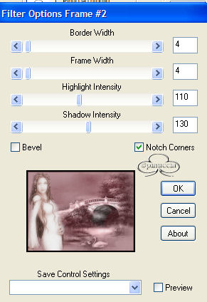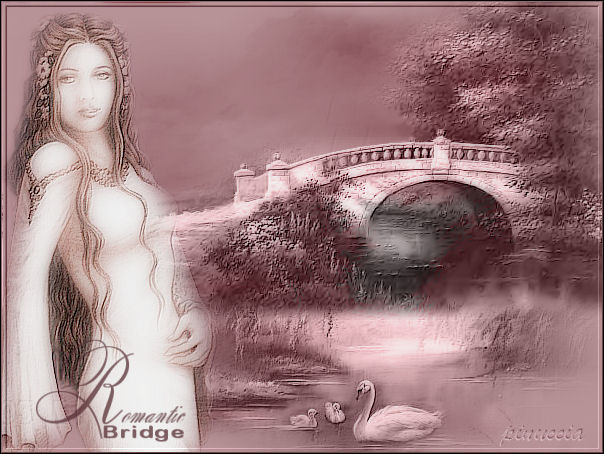 qui puoi trovare qualche risposta ai tuoi dubbi. Se l'argomento che ti interessa non è presente, ti prego di segnalarmelo. Occorrente: Materiale qui Filtri: Bordermania qui FM Tile Tools Blend emboss Xero Porcelain Importa il pennello in PSP. Apri la maschera e le immagini in PSP. Apri una nuova immagine trasparente 600 x 450 pixels. Riempi l'immagine con il colore #8a5057.Livelli>Nuovo livello raster. Riempi il livello con il colore #c0999d.Livelli>Nuovo livello maschera>Da immagine cerca la maschera Chat-mask4, ![]() Livelli>Unisci>Unisci gruppo. Apri il tube dei cigni e vai a Modifica>Copia. Torna al tuo lavoro e vai a Modifica>Incolla>Incolla come nuovo livello. Spostalo a destra.Nella paletta dei livelli cambia la modalità di miscelatura in Luminanza (esistente). Apri il tube Beautifulbridge e vai a Modifica>Copia. Torna al tuo lavoro e vai a Modifica>Incolla>Incolla come nuovo livello. Immagine>Rifletti. Spostalo a destra.Nella paletta dei livelli cambia la modalità di miscelatura in Luminanza (esistente). Apri il tube Misted elfa e vai a Modifica>copia. Torna al tuo lavoro e vai a Modifica>Incolla>Incolla come nuovo livello. Spostalo a sinistra.Regola>Messa a fuoco>Accentua messa a fuoco Livelli>Duplica. Livelli>Unisci>Unisci visibile. Effetti>Plugins>FM Tile Tools / Blend emboss, con i settaggi standard: ![]() Plugins>Xero / Porcelain: ![]() Immagine>Aggiungi bordatura, 2 pixels, simmetriche con il colore #6b474a Effetti>Plugins>Bordermania / Frame#2, ![]() Aggiungi un testo, o usa il pennello incluso nello zip. Aggiungi il tuo nome o il tuo watermark. Livelli>Unisci>Unisci tutto. Regola>Luminosità e contrasto e imposta la luminosità a 1. Salva in formato jpg. ![]() Se hai problemi o dubbi, o trovi un link non funzionante, o anche soltanto per un saluto, scrivimi. Giugno 2006 |