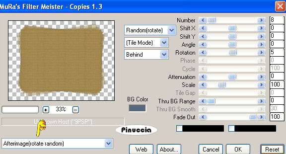 Effetti>Plugins>Mura's Meister / Copies, settaggi standard del preset Afterimage rotate: