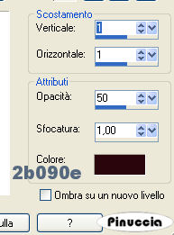 Effetti>Effetti 3D>Sfalsa ombra, con i seguenti settaggi, colore #2b090e.