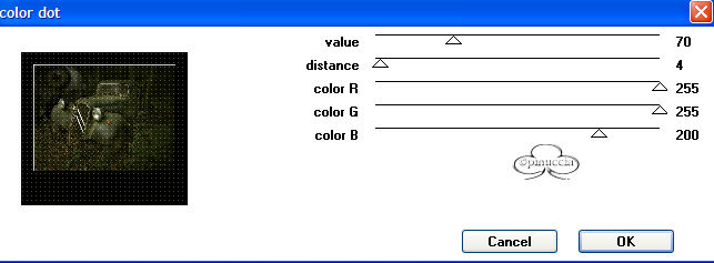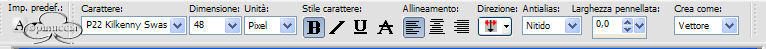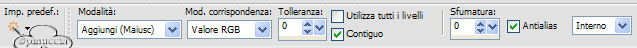 qui puoi trovare qualche risposta ai tuoi dubbi. Se l'argomento che ti interessa non è presente, ti prego di segnalarmelo. Occorrente: Materiale qui Penta.com Colordot qui Se vuoi condividere i tubes, per favore lascia intatto il livello del copyright. Apri i tubes in PSP. Apri l'immagine di sfondo "Car". Questa sarà l'immagine sulla quale lavorerai. Apri il tube dell'occhio "The Eye by Xavie" e vai a Modifica>Copia. Torna al tuo lavoro e vai a Modifica>Incolla>Incolla come nuovo livello. Spostalo nell'angolo in alto a sinistra.Nella paletta dei livelli cambia la modalità di miscelatura in Luminanza (esistente) e abbassa l'opacità al 31%. Immagine>Aggiungi bordatura, 1 pixel, simmetriche, con il colore #ebeee8. Immagine>Aggiungi bordatura, non simmetriche, con il colore nero (#000000) e con i seguenti settaggi: ![]() Seleziona questo bordo nero con la bacchetta magica così impostata:![]() Effetti>Plugins>Penta.com - Color dot, con i seguenti settaggi: ![]() Selezione>Nessuna selezione. Immagine>Aggiungi bordatura, 2 pixels, simmetriche, con il colore #ebeee8. Apri il tube della donna "Mist-by-Honeygosh" e vai a Modifica>Copia. Torna al tuo lavoro e vai a Modifica>Incolla>Incolla come nuovo livello. Sposta la donna in basso a destra, leggermente sopra il bordo,vedi il mio esempio. Livelli>Duplica. Nella paletta dei livelli, attiva il livello inferiore, quello dello sfondo, e cancella la riga bianca sotto le gambe.(per visualizzare meglio, ho abbassato l'opacità dei livelli superiori. Se fai altrettanto, non dimenticare di riportare l'opacità a 100). ![]() Livelli>Unisci>Unisci tutto. Attiva lo strumento Testo , con i seguenti settaggi:![]() Scrivi il testo: Stuck in the middle of nowhere. Posiziona il testo. Livelli>converti in livello raster. Nella paletta dei livelli abbassa l'opacità di questo livello al 70%. Aggiungi il tuo nome o il tuo watermark. Livelli>Unisci>Unisci tutto. Salva in formato jpg. ![]() Se hai problemi o dubbi, o trovi un link non funzionante, o anche soltanto per un saluto, scrivimi. Novembre 2006 |