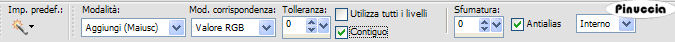 ![]() Imposta il colore di primo piano con #8a623f, e il colore di sfondo con #ffe0bd. Immagine>Aggiungi bordatura, 1 pixel, simmetriche, con il colore di primo piano. Se aggiungi un bordo senza aver unito i livelli, ti apparirà un avviso di azione automatica. Non preoccuparti. Clicca OK e il programma, prima di aggiungere il bordo, farà per l'azione mancante. Sui messaggi di azione automatica vedi qui Immagine>Aggiungi bordatura, 2 pixels, simmetriche, con il colore di sfondo. Immagine>Aggiungi bordatura, 1 pixel, simmetriche, con il colore di primo piano. Immagine>Aggiungi bordatura, 30 pixels, simmetriche, con il colore di sfondo. Seleziona il bordo con la bacchetta magica ![]() ![]() Effetti>Plugins>Mura's Meister - Clouds, con i settaggi standard. ![]() questo filtro utilizza i colori impostati come colore di primo piano e di sfondo. Però, se - dopo l'apertura di PSP - hai già usato il filtro per altri lavori, tiene in memoria i colori precedenti. Quindi, in questo caso, controlla che i colori impostati siano corretti. Selezione>Nessuna selezione. Apri il tube "Venice textart by azyzam" e vai a Modifica>Copia. Torna al tuo lavoro e vai a Modifica>Incolla>Incolla come nuovo livello. Spostalo in basso a sinistra.Aggiungi il tuo nome o il tuo watermark e salva in formato jpg. ![]() Se hai problemi o dubbi, o trovi un link non funzionante, o anche soltanto per un saluto, scrivimi. 6 Febbraio 2007 |