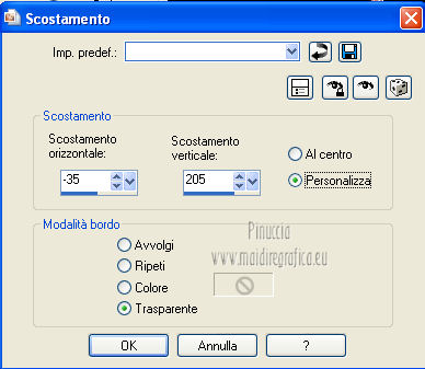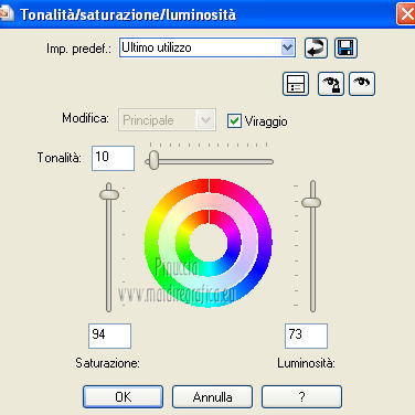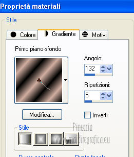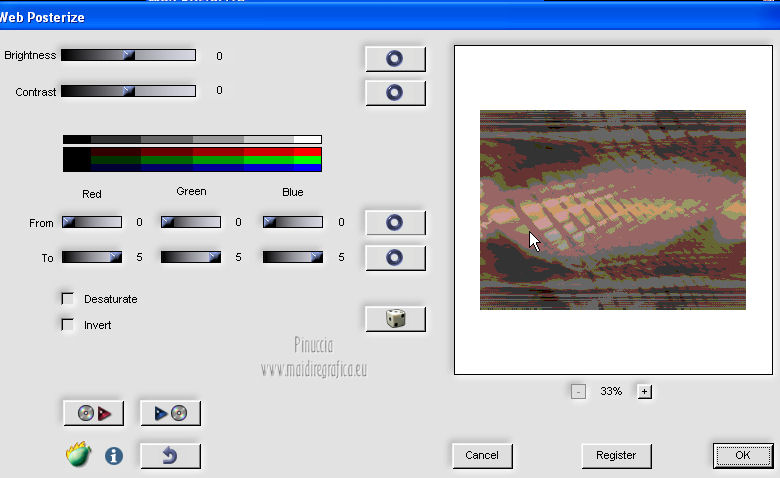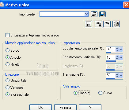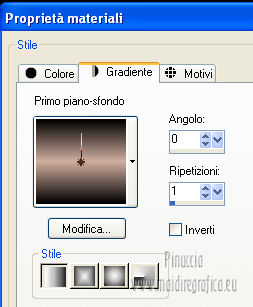 qui puoi trovare qualche risposta ai tuoi dubbi. Se l'argomento che ti interessa non è presente, ti prego di segnalarmelo. Occorrente: Materiale qui Il tube della donna è di Gerry Filtri: consulta, se necessario, la mia sezione filtri qui Flaming Pear Make Cube Tile, Demitone 50, Sphere Warp A qui Flaming Pear - Web Posterize 104 qui Mura's Meister - Perspective Tiling qui FM Tile Tools qui Alien Skin Eye Candy 5 qui ![]() Metti le selezioni nella cartella Selezioni. Imposta il colore di primo piano con #000000 (nero), e il colore di sfondo con #d1aea0. ![]() Passa il colore di primo piano a Gradiente, stile Lineare. ![]() 1. Apri una nuova immagine trasparente 800 x 600 pixels, e riempila con il gradiente.Livelli>Nuovo livello raster. Selezione>Seleziona tutto. Apri l'immagine Binary-code-background e vai a Modifica>Copia. Torna al tuo lavoro e vai a Modifica>Incolla nella selezione. Selezione>Deseleziona. Effetti>Effetti di immagine>Motivo unico. ![]() Effetti>Plugins>Flaming Pear - Make Cube Tile. Effetti>Plugins>Flaming Pear - Demitone 50. Cambia la modalità di miscelatura di questo livello in Luminanza (esistente) e abbassa l'opacità al 50%. Livelli>Unisci>Unisci giù. 2. Livelli>Duplica. Effetti>Plugins>Flaming Pear - Sphere Warp A. Cambia la modalità di miscelatura di questo livello in Luminanza, e abbassa l'opacità al 50%. Livelli>Unisci>Unisci visibile. 3. Livelli>Duplica. Effetti>Plugins>Flaming Pear - Web Posterize. ![]() Cambia la modalità di miscelatura di questo livello in Luce netta, e abbassa l'opacità al 55%. Livelli>Unisci>Unisci visibile. 4. Livelli>Nuovo livello raster. Selezione>Carica/Salva selezione>Carica selezione da disco. Cerca e carica la selezione Benice 84.1. ![]() Apri l'immagine Mainstreet e vai a Modifica>Copia. Torna al tuo lavoro e vai a Modifica>Incolla nella selezione. Selezione>Deseleziona. Cambia la modalità di miscelatura di questo livello in Luminanza, e abbassa l'opacità al 53. Effetti>Plugins>FM Tile Tools - Blend Emboss. ![]() 5. Cambia i settaggi del gradiente. ![]() Livelli>Nuovo livello raster. Selezione>Carica/Salva selezione>Carica selezione da disco. Cerca e carica la selezione Benice 84.2. ![]() Riempi la selezione con il gradiente.Mantieni selezionato. Effetti>Plugins>MuRa's Meister - Perspective Tiling. ![]() Selezione>Deseleziona. Selezione>Carica/Salva selezione>Carica selezione da disco. Cerca e carica la selezione Benice 84.3. ![]() Premi tre volte sulla tastiera il tasto CANC. Selezione>Deseleziona. 6. Livelli>Duplica. Cambia la modalità di miscelatura di questo livello in Moltiplica. e abbassa l'opacità al 65%. Livelli>Unisci>Unisci giù. Abbassa l'opacità di questo livello al 79%. Selezione>Carica/Salva selezione>Carica selezione da disco. Cerca e carica la selezione Benice 84.4. ![]() Premi una volta sulla tastiera il tasto CANC. Selezione>Deseleziona. 7. Selezione>Carica/Salva selezione>Carica selezione da disco. Cerca e carica la selezione Benice 84.5. ![]() Selezione>Innalza selezione a livello. Mantieni selezionato. Cambia la modalità di miscelatura di questo livello in Luminanza, e abbassa l'opacità al 55%. Attiva il livello Raster 2. Premi sulla tastiera il tasto CANC. Selezione>Deseleziona. 8. Attiva il livello superiore. Apri il tube Designal_brushes_2_11 e vai a Modifica>Copia. Torna al tuo lavoro e vai a Modifica>Incolla come nuovo livello. Immagine>Ridimensiona, 70X100%, tutti i livelli e mantieni proporzioni non selezionato. ![]() Regola>Tonalità e saturazione>Tonalità/Saturazione/Luminosità. ![]() Effetti>Effetti 3D>Sfalsa ombra. ![]() Effetti>Effetti di immagine>Scostamento. ![]() Regola>Messa a fuoco>Accentua messa a fuoco. 9. Apri il tube Marif_2007_09Septembre_misted_paysage075 e vai a Modifica>Copia. Torna al tuo lavoro e vai a Modifica>Incolla come nuovo livello. Effetti>Effetti di immagine>Scostamento. ![]() Cambia la modalità di miscelatura di questo livello in Indebolisci, e abbassa l'opacità al 44%. Effetti>Effetti di bordo>Aumenta. Livelli>Duplica. Riporta la modalità di miscelatura di questo livello a Normale, e abbassa l'opacità al 27%. 10. Apri il tube Gerry-Sexylady17-20 november 2007 e vai a Modifica>Copia. Torna al tuo lavoro e vai a Modifica>Incolla come nuovo livello. Immagine>Ridimensiona, al 90%, tutti i livelli non selezionato, mantieni proporzioni selezionato. Sposta il tube in basso e un po' più a destra.Effetti>Plugins>Alien Skin Eye Candy 5 Impact - Perspective Shadow. Seleziona il preset Drop Shadow Blurry e ok. ![]() 11. Cambia nuovamente i settaggi del gradiente. ![]() Livelli>Unisci>Unisci tutto. Immagine>Aggiungi bordatura, 1 pixel, simmetriche, con il colore #1d1511. Immagine>Aggiungi bordatura, 15 pixels, simmetriche, con il colore bianco #ffffff. Seleziona il bordo bianco con la bacchetta magica ![]() e riempi la selezione con il gradiente.Regola>Sfocatura>Sfocatura gaussiana - raggio 40. ![]() Selezione>Innalza selezione a livello. Selezione>Deseleziona. Effetti>Plugins>Flaming Pear - Demitone 50. Cambia la modalità di miscelatura di questo livello in Indebolisci, e abbassa l'opacità al 36%. Livelli>Duplica. Cambia la modalità di miscelatura di questo livello in Moltiplica, e lascia l'opacità a 36. Livelli>Unisci>Unisci tutto. Aggiungi il tuo nome e/o il tuo watermark e salva in formato jpg. ![]() Se hai problemi o dubbi, o trovi un link non funzionante, o anche soltanto per un saluto, scrivimi 14 Ottobre 2012 |