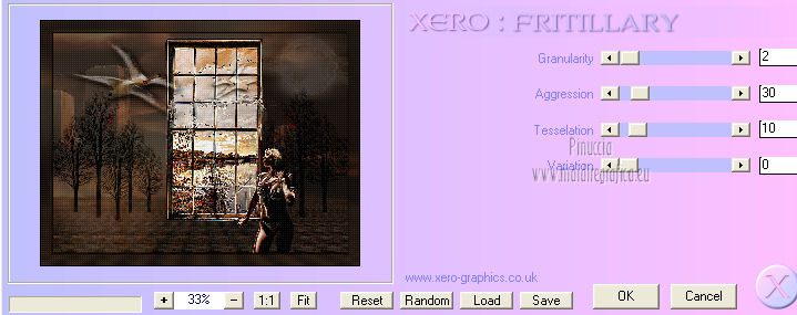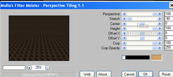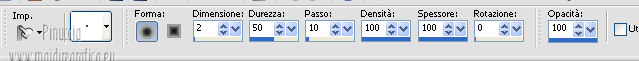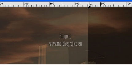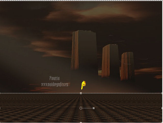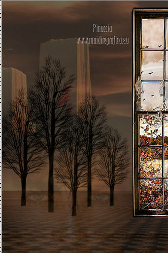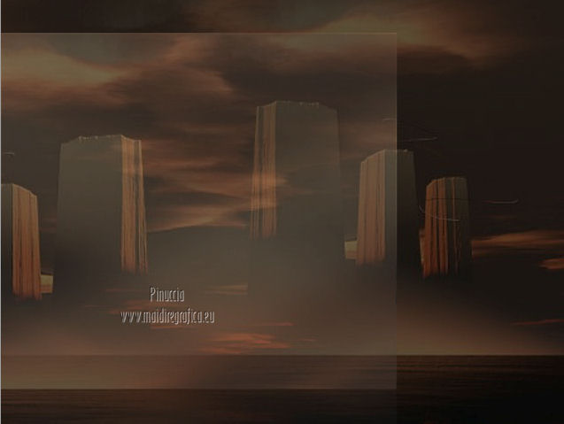qui puoi trovare qualche risposta ai tuoi dubbi. Se l'argomento che ti interessa non è presente, ti prego di segnalarmelo. Occorrente: Materiale qui Filtri: consulta, se necessario, la mia sezione filtri qui FM Tile Tools - Blend Emboss qui Xero - Fritillary qui Mura's Meister - Perspective Tiling qui ![]() 1. Imposta il colore di primo piano con #060300. Apri una nuova immagine trasparente 800 x 600 pixels, e riempila con il colore di primo piano.Livelli>Nuovo livello raster. Selezione>Seleziona tutto. Apri l'immagine Fantasy-Wallpaper04 e vai a Modifica>Copia. Torna al tuo lavoro e vai a Modifica>Incolla nella selezione. Selezione>Deseleziona. Effetti>Plugins>FM Tile Tools - Blend Emboss, con i settaggi standard. ![]() Abbassa l'opacità di questo livello al 36%. 2. Livelli>Duplica. Immagine>Rifletti. Posiziona questo livello come nella schermata.![]() Attiva lo strumento Sfumino ![]() con i seguenti settaggi: ![]() Sfuma leggermente l'angolo superiore destro del livello duplicato. ![]() Chiudi questo livello e attiva il livello sottostante. Livelli>Unisci>Unisci visibile. Rimani su questo livello Uniti. Livelli>Duplica. Effetti>Plugins>Mura's Meister - Perspective Tiling - colore #d2a167. ![]() Premi il tasto K per attivare lo strumento Puntatore ![]() se stai usando PSP 9 il tasto D (valido per tutte le versioni) per attivare lo strumento Deformazione ![]() In modalità Scala spingi il nodo centrale superiore verso il basso, come nell'esempio. ![]() Livelli>Unisci>Unisci visibile. Finestra>Duplica (o, sulla tastiera, maiuscola+D) per fare una copia. Minimizza la copia, e torna al tuo lavoro originale. Riapri il livello chiuso. Livelli>Unisci>Unisci visibile. 3. Apri il tube By-the-light5-lizztish e vai a Modifica>Copia. Torna al tuo lavoro e vai a Modifica>Incolla come nuovo livello. Immagine>Ridimensiona, all'80%, tutti i livelli non selezionato. Sposta il tube nell'angolo in alto a destra.Abbassa l'opacità al 24%. Effetti>Plugins>FM Tile Tools - Blend Emboss, con i settaggi standard. ![]() 4. Apri il tube Calguisphoyomotion22129 e vai a Modifica>Copia. Torna al tuo lavoro e vai a Modifica>Incolla come nuovo livello. Immagine>Ridimensiona, 1 volta all'80% e una volta al 90%, tutti i livelli non selezionato. Sposta il tube al centro con il lato destro sulla linea dello sfondo.![]() Effetti>Plugins>FM Tile Tools - Blend Emboss, con i settaggi standard. 5. Apri il tube Graphsabine_design131 e vai a Modifica>Copia. Torna al tuo lavoro e vai a Modifica>Incolla come nuovo livello. Immagine>Ridimensiona, una volta all'80%, e una volta al 90%, tutti i livelli non selezionato. Sposta il tube a sinistra.![]() Livelli>Duplica. Discosta leggermente il duplicato dal livello originale.![]() Livelli>Unisci>Unisci giù. Livelli>Duplica. Immagine>Rifletti. Livelli>Unisci>Unisci giù. Nella paletta dei livelli porta questo livello sotto quello della finestra. 6. Apri il tube Domini e vai a Modifica>Copia. Torna al tuo lavoro e vai a Modifica>Incolla come nuovo livello. Sposta il tube in basso a sinistra,sulla linea dell'orizzonte e tra gli alberi. Effetti>Plugins>FM Tile Tools - Blend Emboss, con i settaggi standard. Abbassa l'opacità di questo livello al 18%. ![]() 7. Apri il tube Swans_27 e vai a Modifica>Copia. Torna al tuo lavoro e vai a Modifica>Incolla come nuovo livello. Immagine>Ridimensiona, al 65%, tutti i livelli non selezionato. Spostalo in alto a sinistra.Effetti>Effetti 3D>Sfalsa ombra, con il colore nero. ![]() Cambia la modalità di miscelatura di questo livello in Luce netta. Livelli>Duplica. Immagine>Rifletti. Immagine>Ridimensiona, al 50%, tutti i livelli non selezionato. Sposta il tube sulla finestra.Attiva lo strumento Gomma ![]() e cancella il piccolo pezzo di coda visibile fuori dalla finestra. ![]() 8. Immagine>Aggiungi bordatura, 2 pixels, simmetriche, con il colore #060300. Immagine>Aggiungi bordatura, 30 pixels, simmetriche, con il colore bianco. Immagine>Aggiungi bordatura, 2 pixels, simmetriche, con il colore #060300. Seleziona il bordo bianco con la bacchetta magica ![]() Attiva il duplicato che hai minimizzato al punto 2 e vai a Modifica>Copia. Torna al tuo lavoro e vai a Modifica>Incolla nella selezione. Regola>Sfocatura>Sfocatura gaussiana - raggio 5. ![]() Effetti>Plugins>Xero - Fritillary. ![]() Selezione>Deseleziona. Aggiungi il tuo nome e/o il tuo watermark e salva in formato jpg. ![]() Se hai problemi o dubbi, o trovi un link non funzionante, o anche soltanto per un saluto, scrivimi 4 Novembre 2012 |