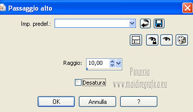 qui puoi trovare qualche risposta ai tuoi dubbi. Se l'argomento che ti interessa non è presente, ti prego di segnalarmelo. Occorrente: Materiale qui Filtri: consulta, se necessario, la mia sezione filtri qui FM Tile Tools - Blend Emboss qui ![]() 1. Imposta il colore di primo piano con il colore bianco. Apri una nuova immagine trasparente 800 x 600 pixels, e riempila con il colore bianco.2. Livelli>Nuovo livello raster. Selezione>Seleziona tutto. Apri JHanna 100 bground e vai a Modifica>Copia. Torna al tuo lavoro e vai a Modifica>Incolla nella selezione. Selezione>Deseleziona. Effetti>Plugins>FM Tile Tools - Blend Emboss, 2 volte con i settaggi standard. ![]() Abbassa l'opacità di questo livello al 15%. 3. Livelli>Nuovo livello raster. Selezione>Seleziona tutto. Apri il tube White wash window - Janet e vai a Modifica>Copia. Torna al tuo lavoro e vai a Modifica>Incolla nella selezione. Selezione>Deseleziona. Effetti>Effetti di bordo>Aumenta di più. Effetti>Plugins>FM Tile Tools - Blend Emboss, 2 volte con i settaggi standard. Cambia la modalità di miscelatura di questo livello in Filtra. Livelli>Unisci>Unisci visibile. 4. Apri il tube Sellette e vai a Modifica>Copia. Torna al tuo lavoro e vai a Modifica>Incolla come nuovo livello. Immagine>Ridimensiona, al 70 %, tutti i livelli non selezionato. Regola>Messa a fuoco>Metti a fuoco. Sposta il tube in basso a destra.Effetti>Plugins>FM Tile Tools - Blend Emboss, con i settaggi standard. Cambia la modalità di miscelatura di questo livello in Luminanza (esistente). 5. Apri il tube MorgueFileCandles 1 Conny tube e vai a Modifica>Copia. Torna al tuo lavoro e vai a Modifica>Incolla come nuovo livello. Immagine>Ridimensiona, al 20 %, tutti i livelli non selezionato. Sposta il tube a destra,sul tavolino sinistro. ![]() Effetti>Plugins>FM Tile Tools - Blend Emboss, con i settaggi standard. Cambia la modalità di miscelatura di questo livello in Luminanza (esistente). Livelli>Unisci>Unisci giù. Abbassa l'opacità di questo livello al 65%. 6. Apri il tube BPS Holiday Poinsetta Display designed, e vai a Modifica>Copia. Torna al tuo lavoro e vai a Modifica>Incolla come nuovo livello. Immagine>Ridimensiona, al 50%, tutti i livelli non selezionato. Sposta il tube in alto al centro.Regola>Tonalità e saturazione>Viraggio. ![]() Immagine>Ruota per gradi - 2 gradi a sinistra. Effetti>Plugins>FM Tile Tools - Blend Emboss, con i settaggi standard. Effetti>Effetti di bordo>Aumenta di più. Effetti>Effetti di bordo>Passaggio alto. ![]() Cambia la modalità di miscelatura di questo livello in Esclusione, e abbassa l'opacità al 50%. 7. Apri il tube A©RainbowCoffi e vai a Modifica>Copia. Torna al tuo lavoro e vai a Modifica>Incolla come nuovo livello. Spostalo in basso a sinistra.Cambia la modalità di miscelatura di questo livello in Luminanza (esistente). 8. Apri il tube B57- candles - Xmas - 11- 09 e vai a Modifica>Copia. Torna al tuo lavoro e vai a Modifica>Incolla come nuovo livello. Immagine>Ridimensiona, al 35%, tutti i livelli non selezionato. Spostalo a sinistra, davanti all'albero.![]() 9. Apri il tube NS - 67 - 1311 - 09 e vai a Modifica>Copia. Torna al tuo lavoro e vai a Modifica>Incolla come nuovo livello. Immagine>Ridimensiona, al 50%, tutti i livelli non selezionato. Spostalo in basso a destra.![]() 10. Apri Gerry Kerst - 27 star 16 september 2008 e vai a Modifica>Copia. Torna al tuo lavoro e vai a Modifica>Incolla come nuovo livello. Immagine>Ridimensiona, al 50%, tutti i livelli non selezionato. Spostalo in alto al centro.Livelli>Duplica. Immagine>Ridimensiona, al 50%, tutti i livelli non selezionato. Spostalo in alto, a destra della ghirlanda.Livelli>Duplica. Immagine>Rifletti. Posiziona correttamente il duplicato.11. Apri il tube CJ edges e vai a Modifica>Copia. Torna al tuo lavoro e vai a Modifica>Incolla come nuovo livello. Immagine>Ridimensiona, all'80%, tutti i livelli non selezionato. Spostalo in alto a sinistra.Livelli>Duplica. Immagine>Ridimensiona, all'80%, tutti i livelli non selezionato. Spostalo a destra del precedente.Di nuovo Livelli>Duplica. Immagine>Ridimensiona, all'80%, tutti i livelli non selezionato. Spostalo a destra del precedente.Livelli>Unisci>Unisci giù - 2 volte. Livelli>Duplica. Immagine>Rifletti. 12. Apri il tube Gerry - Kerst 63 - woman - 24 0ktober 2009, e vai a Modifica>Copia. Torna al tuo lavoro e vai a Modifica>Incolla come nuovo livello. Immagine>Ridimensiona, al 75%, tutti i livelli non selezionato. Posiziona correttamente il tube.Regola>Messa a fuoco>Metti a fuoco. 13. Livelli>Unisci>Unisci tutto. Livelli>Duplica. Immagine>Ridimensiona, all'80%, tutti i livelli non selezionato. Effetti>Effetti 3D>Sfalsa ombra, con il colore nero. ![]() Ripeti l'Effetto Sfalsa ombra, cambiando verticale e orizzontale con -6. Attiva il livello inferiore. Regola>Sfocatura>Sfocatura gaussiana - raggio 60. ![]() Regola>Messa a fuoco>Metti a fuoco. Effetti>Effetti di foto>Pellicola a Infrarossi. ![]() se nella tua versione di PSP non hai questo effetto: Regola>Tonalità e saturazione>Viraggio. ![]() Regola>Aggiungi/Rimuovi disturbo>Aggiungi disturbo, con settaggi a tua scelta. I miei. ![]() Immagine>Aggiungi bordatura, 2 pixels, simmetriche, con il colore #404040. Immagine>Aggiungi bordatura, 2 pixels, simmetriche, con il colore bianco. Immagine>Aggiungi bordatura, 2 pixels, simmetriche, con il colore #404040. Aggiungi il tuo nome e/o il tuo watermark e salva in formato jpg. ![]() Se hai problemi o dubbi, o trovi un link non funzionante, o anche soltanto per un saluto, scrivimi 1 Novembre 2012 |