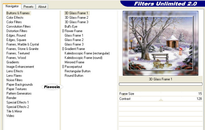qui puoi trovare qualche risposta ai tuoi dubbi. Se l'argomento che ti interessa non č presente, ti prego di segnalarmelo. Occorrente: Materiale qui Filtri: Deformation qui Filters Unlimited qui 1. Apri una nuova immagine trasparente 600 x 500 pixels. 2. Selezione>Seleziona tutto. 3. Apri l'immagine "Barbarafelisky_Restored Suzan M". 4. Immagine>Rifletti. 5. Modifica>Copia. Torna al tuo lavoro e vai a Modifica>Incolla nella selezione. 6. Selezione>Deseleziona. 7. Apri il tube del cagnolino e vai a Modifica>copia. l'autrice non ha messo il tube nello zip. Ne ho usato uno a mia scelta. Puoi seguire il mio esempio. Naturalmente, puņ essere anche il tube di un altro animale 8. Torna al tuo lavoro e vai a Modifica>Incolla come nuovo livello. Immagine>Ridimensiona, se e quanto necessario e posiziona il tube dove preferisci.9. Apri "bunny" e vai a Modifica>Copia. Torna al tuo lavoro e vai a Modifica>Incolla come nuovo livello. 10. Immagine>ridimensiona, al 20%, tutti i livelli non selezionato. 11. Regola>Messa a fuoco>Metti a fuoco. 12. Immagine>Rifletti. 13. Posiziona l'animale a sinistra (vedi il mio esempio).14. Apri "Bunniesnow". Attiva lo strumento Selezione a mano libera ![]() e seleziona il gruppo di conigli che preferisci. Modifica>Copia. Torna al tuo lavoro e vai a Modifica>Incolla come nuovo livello. 15. Immagine>Ridimensiona, al 50%, tutti i livelli non selezionato. 16. Sposta i coniglietti in basso al centro.17. Cambia la modalitą di miscelatura di questo livello in Moltiplica. Controlla che tutto sia al posto giusto e vai a Livelli>Unisci>Unisci tutto. 18. Copia l'immagine per tenerla in memoria: Modifica>Copia. 19. Immagine>Aggiungi bordatura, 5 pixels, simmetriche, con un colore chiaro preso dall'immagine. 20. Immagine>Aggiungi bordatura, 50 pixels, simmetriche, con un altro colore preso dall'immagine. 21. Seleziona questo bordo con la bacchetta magica ![]() ![]() 22. Effetti>Plugins>Deformation - Stars - 68,35. nel filtro fornito dall'autrice non ho trovato questo effetto. Non l'ho trovato nemmeno tra i miei filtri, nč effettuando una ricerca nel web. Pertanto, da questo punto, ho dovuto trovare delle alternative. Per questa ragione, al punto 16 ti ho fatto copiare il lavoro finale. 23. Modifica>Incolla nella selezione. 24. Regola>Sfocatura>Sfocatura gaussiana - raggio 5 - 2 volte: ![]() 25. Selezione>Inverti. 26. Effetti>Effetti 3D>Smusso a rilievo, con i settaggi standard. 27. Selezione>inverti. 28. Effetti>Plugins>Filters Unlimited 2.0 - Buttons and Frames: ![]() 29. Selezione>Deseleziona. 30. Ridimensiona, se vuoi. In questo caso: Regola>Messa a fuoco>Metti a fuoco. 31. Aggiungi il tuo nome e/o il tuo watermark e salva in formato jpg. ![]() Se hai problemi o dubbi, o trovi un link non funzionante, o anche soltanto per un saluto, scrivimi. 29 Novembre 2008