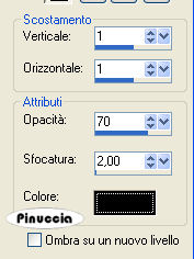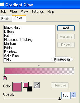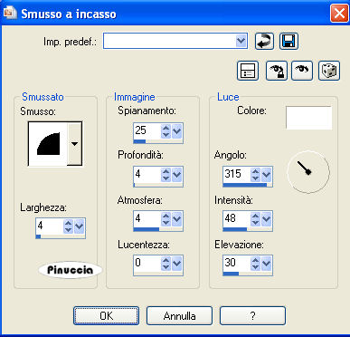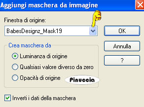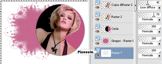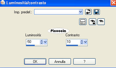qui puoi trovare qualche risposta ai tuoi dubbi. Se l'argomento che ti interessa non è presente, ti prego di segnalarmelo. Questo tutorial è stato scritto con PSP X2, ma può essere eseguito anche con le altre versioni di PSP. Per tradurlo, ho usato PSP X. ©Biene - tutti i diritti riservati. Il © della traduzione è mio. Occorrente: Un tube a scelta. Il tube usato per il mio esempio è di Colombe. Materiale qui Template 108 di Rachel che puoi trovare http://scrapsofenchantment.blogspot.com/2009/09/template108.html?zx=25c667b81e18d4d2 qui, sotto 28 September 2009. La maschera BabesDesignz_Mask10 che puoi trovare http://babesdesignz.blogspot.com/ qui, sotto 31 marz 2009. Un ringraziamento ai creatori di tubes dei vari gruppi cui appartengo. Il watermark di ognuno è inserito nei tubes. Per favore, rispetta il lavoro degli autori: non cambiare il nome del file e non rimuovere il watermark. Il © appartiene agli artisti originali. Filtri: Eye Candy 4000 - Gradient Glow - Chrome qui ![]() Scegli un colore dai tuoi tube e impostalo come colore di primo piano; il mio #c15581. Imposta il colore di sfondo con il bianco. Apri la maschera BabesDesignz_Mask19.jpg e minimizzala nella tua area di lavoro. Apri il template. Duplicalo usando la combinazione di tasti maiuscola+D e chiudi l'originale. La copia sarà la base del tuo lavoro. Attiva il livello "Circle". Livelli>Nuovo livello raster. Immagine>Dimensione tela - 700 x 503. ![]() Livelli>Disponi>Sposta giù. Riempi il livello con il bianco (tasto destro del mouse).Livelli>Nuovo livello raster. Riempi con il colore di primo piano.Livelli>Nuovo livello maschera>Da immagine. Apri il menu sotto la finestra di origine e vedrai la lista dei files aperti. Tra questi la maschera. Seleziona la maschera BabesDesignz_Mask19 con i seguenti settaggi: ![]() Livelli>Unisci>Unisci gruppo. Sposta la maschera nell'angolo in alto a sinistra.per lavorare meglio, ho nascosto i livelli superiori, che aprirò man mano che il lavoro va avanti ![]() Livelli>Duplica. Livelli>Disponi>Sposta giù. Regola>Tonalità e saturazione>Viraggio. ![]() Regola>Luminosità e contrasto>Luminosità e contrasto - 2 volte, con i seguenti settaggi. ![]() Effetti>Effetti di bordo>Aumenta. Cambia la modalità di miscelatura di questo livello in Dissolvi, e abbassa l'opacità all'8%. Livelli>Unisci>Unisci giù. Attiva nuovamente il livello "Circle". Attiva lo strumento Bacchetta magica , sfumatura e tolleranza 0,e clicca sull'area rosa per selezionarla. Riempi la selezione con il colore di primo piano.Selezione>Deseleziona. Apri il tuo tube e seleziona la parte del tube che vuoi inserire nell'area del cerchio. puoi anche usare un tube "closeup" (cioè il tube di un viso) Modifica>Copia. Torna al tuo lavoro e vai a Modifica>Incolla come nuovo livello. Posiziona il tube nell'area selezionata.Attiva nuovamente il livello "Circle". Selezione>Seleziona tutto. Selezione>Mobile. Selezione>Immobilizza. Selezione>Inverti. Attiva nuovamente il livello del tube, e premi sulla tastiera il tasto CANC. Selezione>Deseleziona. Abbassa l'opacità di questo livello al 70%. Livelli>Duplica. Regola>Sfocatura>Sfocatura gaussiana - raggio 3. ![]() Cambia la modalità di miscelatura di questo livello in Luce diffusa, e abbassa l'opacità al 42%. ![]() Se il bordo un po' frastagliato del cerchio ti disturba: attiva lo strumento Forme predefinite-ellisse , larghezza 3,chiudi il livello di sfondo e imposta il colore nero come colore di primo piano, e traccia una selezione intorno al cerchio. Per poter correggere le dimensioni della forma per adattarla al cerchio esistente, attiva lo strumento Testo ![]() in questo modo, la forma verrà "ingabbiata" e potrai apportare le modifiche necessarie. ![]() Livelli>Converti in livello raster. Attiva ancora il livello "circle". Effetti>Effetti 3D>Sfalsa ombra, con il colore nero. ![]() Ripeti l'Effetto Sfalsa ombra, cambiando verticale e orizzontale con -2. Attiva il livello "InnerFrame". Attiva nuovamente il tuo tube e seleziona un'altra parte da inserire nell'area del rettangolo. Modifica>Copia. Torna al tuo lavoro e vai a Modifica>Incolla come nuovo livello. Posiziona il tube nell'area del rettangolo.Attiva nuovamente il livello "InnerFrame". Selezione>Seleziona tutto. Selezione>Mobile. Selezione>Immobilizza. Imposta il colore di sfondo con il nero. Riempi la selezione con il colore nero.Selezione>Inverti. Attiva il livello del tube, e premi sulla tastiera il tasto CANC. Selezione>Deseleziona. Abbassa l'opacità di questo livello al 60%. Attiva il livello "Frame". Selezione>Seleziona tutto. Selezione>Mobile. Selezione>Immobilizza. Riempi la selezione con il colore di primo piano.Selezione>Deseleziona. Livelli>Duplica. Abbassa l'opacità di questo livello al 37%. Attiva il livello sottostante. Effetti>Plugins>Eye Candy 4000 - Chrome, Imposta "bevel profile" con Button. ![]() ![]() Attiva il livello copia di Cornice. Livelli>Unisci>Unisci giù. Effetti>Effetti 3D>Sfalsa ombra, con il colore nero. ![]() Dal materiale, apri il tube "starcluster" e vai a Modifica>Copia. Torna al tuo lavoro e vai a Modifica>Incolla come nuovo livello. Posiziona il tube sulla cornice.Livelli>Duplica. Effetti>Plugins>Eye Candy 4000 - Chrome, con i settaggi precedenti. Effetti>Effetti di bordo>Aumenta. Livelli>Unisci>Unisci giù - 2 volte. Effetti>Effetti 3D>sfalsa ombra, con il colore nero. ![]() Attiva lo strumento Forma simmetrica , larghezza 0,Inverti i colori di primo piano e sfondo (non dimenticare poi di rimettere in ordine i colori), e disegna una stella nel rettangolo. La stella deve riempire tutta l'area del rettangolo. Rinomina questo livello "stella". Abbassa l'opacità al 50%. ![]() Attiva il livello "Black DottedLine". Usa la freccia a sinistra della tastiera per spostare la linea punteggiata tra l'area nera e quella rosa. sull'uso delle frecce della tastiera abbinato allo strumento Spostamento vedi qui ![]() Effetti>Effetti 3D>Sfalsa ombra, con il colore nero. ![]() Puoi eliminare i