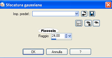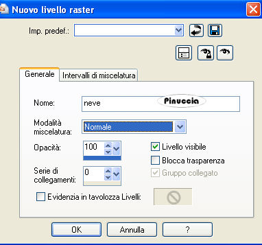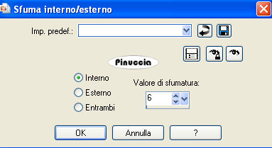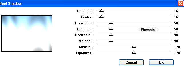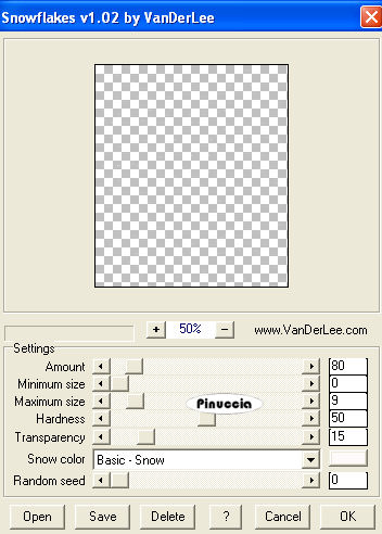 qui puoi trovare qualche risposta ai tuoi dubbi. Se l'argomento che ti interessa non è presente, ti prego di segnalarmelo. Questo tutorial è stato scritto con PSP X, ma può essere eseguito anche con le altre versioni di PSP. Occorrente: Il tube di una donna a tua scelta. Il resto del materiale qui I tubes che ho usato sono di Jet, Marion & Dieter e Pasquale. Rispetta il lavoro degli autori e mantieni inalterati i tubes. Filtri: Greg's Factory Output II qui VDL Adrenaline Snowflakes qui Ti servirà anche Animation Shop qui Metti la maschera 20-20 nella cartella Maschere. Metti il motivo Muster-silber nella cartella Motivi. Se lo apri e minimizzi nella tua area di lavoro, lo troverai nella lista dei motivi disponibili, quando ti servirà. Imposta il colore di primo piano con #75a2c5, e il colore di sfondo con il bianco (#ffffff). Passa il colore di primo piano a Gradiente di primo piano/sfondo, stile lineare: ![]() Apri una nuova immagine trasparente 700 x 500 pixels, e riempila con il gradiente.Livelli>Duplica. Effetti>Plugins>Greg's Factory Output II - Pool Shadow: ![]() Regola>Sfocatura>Sfocatura gaussiana, raggio 24, per due volte. ![]() Apri il tube della donna e vai a Modifica>copia. Torna al tuo lavoro e vai a Modifica>Incolla come nuovo livello. Livelli>Carica/Salva maschera>Carica maschera da disco. Cerca e carica la maschera 20-20 con i seguenti settaggi: ![]() Livelli>Unisci>Unisci gruppo. Sposta il tube completamente a sinistra.Apri mds5024CHRISTMAS14.06.07pspimage.psp, e vai a Modifica>Copia. Torna al tuo lavoro e vai a Modifica>Incolla come nuovo livello. Immagine>Ridimensiona, al 115%, tutti i livelli non selezionato. Attiva lo strumento Gomma , con i seguenti settaggi.![]() cancella dal viso della donna le tracce del tube. ![]() Attiva lo strumento Selezione a mano libera , sfumatura e spianamento 0,e seleziona la parte di paesaggio accanto alla donna. ![]() Selezione>Modifica>Sfuma interno esterno: ![]() Livelli>Nuovo livello raster. Approfitta della finestra del nuovo livello per assegnare il nome "Neve": ![]() Mantieni selezionato. Livelli>Duplica, per 2 volte. Ritorna sul livello Neve. Effetti>Plugins>VDL Adrenaline - Snowflakes: ![]() questa è la schermata dell'ultima versione del filtro (1.02) fornita con il tutorial. Se stai usando la versione precedente, l'aspetto sarà diverso, ma le impostazioni e il risultato saranno uguali. Attiva il livello Copia di Neve. Ripeti l'Effetto Snowflakes, con gli stessi settaggi, ma portando Random Seed a 100. ![]() Chiudi questo livello. Attiva il livello Copia (2) di neve. Ripeti l'Effetto Snowflakes, cambiando Random Seed con 200. Chiudi questo livello. Apri PPT_Tekst_TouchOfSnow.psp, e vai a Modifica>Copia. Torna al tuo lavoro e vai a Modifica>Incolla come nuovo livello. Sposta il testo in basso a sinistra.Ingrandisci la tua immagine almeno al 150%, usando la rotellina del mouse o cliccando sullo strumento zoom ![]() vedrai un bordo scuro a destra del testo. ![]() Attiva lo strumento Gomma con i settaggi precedenti,e cancella con cura questo particolare. Regola>Saturazione e tonalità>Viraggio: ![]() Livelli>Nuovo livello raster. Selezione>Seleziona tutto. Selezione>modifica>contrai, di 1 pixel. Selezione>Inverti. Apri il Passa il colore di primo piano a Motivi e seleziona il motivo argento con i settaggi standard: ![]() Riempi la selezione con questo motivo.Selezione>Deseleziona. Selezione>Seleziona tutto. Immagine>Dimensione tela - 800 x 600 pixels, e clicca sulla freccia al centro. ![]() Mantieni selezionato. Attiva il livello Raster 1. Effetti>Effetti 3D>Sfalsa ombra: ![]() Ripeti l'Effetto Sfalsa ombra, ma cambiando verticale e orizzontale -3. Mantieni ancora selezionato. Attiva il livello Raster 2 (il livello con la chiesa). Selezione>Inverti. Premi sulla tastiera il tasto CANC ![]() Controlla se anche il tube della donna ha lasciato tracce al di fuori del bordo: ![]() In questo caso, posizionati sul livello del tube e premi il tasto canc. Selezione>Deseleziona. Attiva nuovamente il livello Raster 1. Livelli>Nuovo livello raster. Riempi nuovamente con il gradiente.Livelli>Disponi>Sposta giù. Apri mds7135 Yoho_National_Park_British_Columbia.psp, e vai a Modifica>copia. Torna al tuo lavoro e vai a Modifica>Incolla come nuovo livello. Immagine>Ridimensiona, al 115%, tutti i livelli non selezionato. Ripeti Immagine>Ridimensiona ancora due volte (in totale, quindi, 3 volte). Attiva il livello superiore. Apri MD-Corner-3silver.psp, e vai a Modifica>Copia. Torna al tuo lavoro e vai a Modifica>Incolla come nuovo livello. Immagine>Ridimensiona, al 50%, tutti i livelli non selezionato. Regola>Messa a fuoco>Metti a fuoco. Sposta questo tube nell'angolo a destra.Livelli>Duplica. Immagine>Capovolgi. Immagine>Rifletti. Livelli>Nuovo livello raster. Selezione>Seleziona tutto. Selezione>Modifica>Contrai, di 2 pixels. Selezione>Inverti. Riempi con il motivo argento.Selezione>Deseleziona. Se vuoi, questo è il momento di aggiungere alla tag il tuo nome e/o il tuo watermark. Controlla che i due livelli della copia di neve siano chiusi. ![]() Modifica>Copia unione. Apri Animation Shop e vai a Modifica>Incolla>Incolla come nuova animazione. Torna in PSP. Chiudi il livello neve e rendi visibile il livello Copia di neve. ![]() Modifica>Copia Unione. Torna in Animation Shop e vai a Modifica>Incolla>incolla dopo il fotogramma corrente. Ancora in PSP. Chiudi il livello copia di neve e rendi visibile il livello della seconda copia. ![]() Per finire, in Animation Shop: Modifica>Incolla>Incolla dopo il fotogramma corrente. Ed ecco la tua animazione composta da tre fotogrammi. Controlla il risultato cliccando su Visualizza , e salva in formato gif.Questo è il risultato senza l'animazione. ![]() ![]() Se hai problemi o dubbi, o trovi un link non funzionante, o anche soltanto per un saluto, scrivimi 21 Dicembre 2007 |