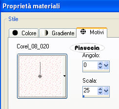 Passa il colore di primo piano a Motivi e seleziona il motivo Corel_08_020, con i seguenti settaggi: