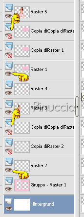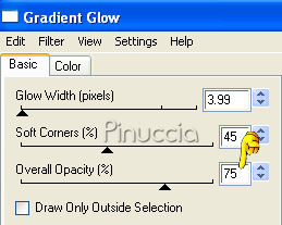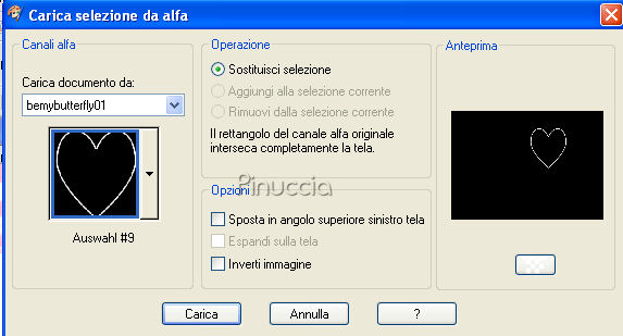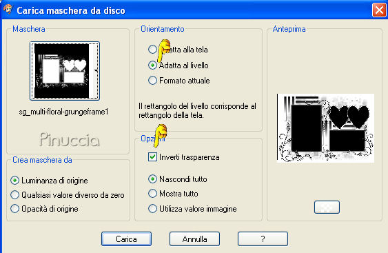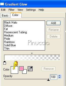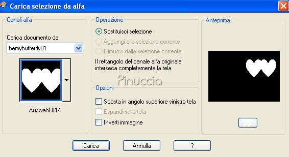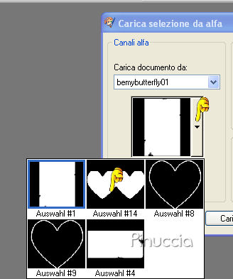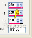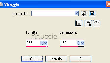 qui puoi trovare qualche risposta ai tuoi dubbi. Se l'argomento che ti interessa non è presente, ti prego di segnalarmelo. Questo tutorial è stato scritto con PSP X. Occorrente: Il tube di una ragazza a scelta. Il tube che ho usato è di Suzi Sgai. Il resto del materiale qui Metti la maschera nella cartella Maschere. Metti il pennello nella cartella dei pennelli. Fai attenzione, perchè il pennello è composto da due files che non devono essere separati. vedi alcuni appunti sui pennelli qui Filtri: Alien Skin Xenofex qui Eye Candy 4000 qui Su questi filtri, trovi alcuni appunti in questa pagina Imposta il colore di primo piano con #ffbdd6, e il colore di sfondo con il bianco (#ffffff). Apri Bemybutterfly01.pspimage. L'immagine, che sarà la base del tuo lavoro, non è vuota, ma contiene le selezioni del canale alfa. Livelli>Nuovo livello raster. Riempi l'immagine con il colore di primo piano.Livelli>Carica/Salva maschera>Carica maschera da disco. Cerca e carica la maschera sg_multifloral-grungeframe1: ![]() Livelli>Unisci>Unisci gruppo. Livelli>Nuovo livello raster. Selezione>Carica/Salva selezione>Carica selezione da canale alfa. Clicca sulla freccia a fianco del box e nella lista delle selezioni presenti, clicca su Auswahl #14. la selezione Auswahl#4 non ti servirà ![]() ![]() Riempi la selezione con il colore di primo piano.Selezione>Deseleziona. Livelli>Nuovo livello raster. Selezione>Carica/Salva selezione>Carica selezione da canale alfa: seleziona e carica Auswahl #8. ![]() Riempi la selezione con il bianco.ricorda che il bianco è impostato come colore di sfondo. Quindi, per riempire, devi cliccare con il tasto destro del mouse. Se lo spazio ristretto ti crea difficoltà a riempire, usa la rotellina del mouse o lo strumento zoom per allargare il bordo.Sempre su questo livello: Selezione>Carica/Salva selezione>Carica selezione da canale Alfa. seleziona e carica Auswahl #9. ![]() Riempi la selezione con il bianco.Selezione>Deseleziona. Livelli>Disponi>Sposta giù. Posizionati nuovamente sul livello superiore. Livelli>Nuovo livello raster. Selezione>Carica/Salva selezione>Carica selezione da disco. La selezione Auswahl #1 è già presente. Devi soltanto cliccare Carica. ![]() Apri il tube della donna che hai deciso di utilizzare. Immagine>Rifletti. Modifica>Copia. non chiudere il tube, perchè ti servirà ancora. Torna al tuo lavoro e vai a Modifica>Incolla nella selezione. Selezione>Deseleziona. Abbassa l'opacità di questo livello al 50%. Livelli>Nuovo livello raster. Attiva lo strumento Pennello ![]() Cerca e seleziona il pennello be_my_butterfly1_biene, dimensione 215 pixels. ![]() Cambia la tonalità del colore rosa che hai impostato come colore di primo piano, portando il valore L (Luminosità) a 200: ![]() Applica il pennello nel riquadro bianco in basso a destra. Attiva nuovamente il tube della donna. Riportalo allo stato originale: Modifica>Annulla azione Rifletti. Modifica>Copia. Torna al tuo lavoro e vai a Modifica>Incolla come nuovo livello. Immagine>Ridimensiona, tutti i livelli non selezionato, nella misura necessaria. il mio tube è stato ridimensionato al 90%, per far sì che la testa toccasse il bordo. Apri H@nne_6Butterflies.psp. Scegli una farfalla. Come vedrai ogni farfalla si trova in un proprio livello. Cliccando sulla farfalla con lo strumento Spostamento ,potrai automaticamente individuare il livello corrispondente, che diventerà blu. Io ho scelto il livello 5. ![]() Modifica>Copia. Torna al tuo lavoro e vai a Modifica>Incolla come nuovo livello. Immagine>Rifletti. Regola>Saturazione e tonalità>Viraggio: ![]() Posiziona la farfalla in alto a destra.Abbassa l'opacità di questo livello al 50%. Apri 5pink.png e vai a Modifica>Copia. Torna al tuo lavoro e vai a Modifica>Incolla come nuovo livello. Regola>Saturazione e tonalità>Viraggio, con i settaggi precedenti. Abbassa l'opacità di questo livello al 38%. Sposta i cuori in alto a sinistra.Livelli>Nuovolivello raster. Selezione>Seleziona tutto. Immagine>Dimensione tela, 704 x 504 pixels. Selezione>Inverti. Riempi la selezione con il colore bianco.Selezione>Seleziona tutto. Immagine>Dimensione tela: 708x504. Selezione>Inverti. Riempi la selezione con il colore di primo piano.Questo è il momento, se vuoi, di aggiungere il tuo nome e/o il tuo watermark al tuo lavoro. Se non vuoi animare la tag: Livelli>Unisci>Unisci tutto e salva in formato jpg. ![]() Per creare l'animazione Attiva il livello Raster 1: il livello con i due cuori: Livelli>Duplica, 2 volte. Chiudi i livelli duplicati e posizionati sul livello originale. Effetti>Plugins>Alien Skin - Xenofex - Constellation, con i seguenti settaggi. ![]() Chiudi questo livello e attiva la prima copia. Ripeti l'Effetto Constellation, ma portando il valore Random Seed a 500. Chiudi questo livello e attiva la seconda copia. Ripeti l'Effetto Constellation, portando il valore Random Seed a 1000. Posizionati ora sul livello Raster 2: il livello con la cornice dei cuori. Livelli>Duplica, 2 volte, e chiudi i livelli duplicati. Posizionati sul livello originale Raster 2. Effetti>Plugins>Eye Candy 4000 - Gradient Glow, con i seguenti settaggi: attenzione al valore Overall Opacity, che deve essere impostato a 50. ![]() Dopo aver impostato i settaggi, clicca sulla linguetta Color e cambia il colore alla paletta più grande: ![]() Chiudi questo livello e attiva la prima copia. Ripeti l'Effetto Gradient Glow, ma portando il valore di Overall Opacity a 75. ![]() Chiudi questo livello e attiva la seconda copia. Ripeti l'Effetto Gradient Glow, portando il valore di Overall Opacity a 100. Adesso devi unire i livelli per l'animazione. Chiudi le copie dei livelli Raster 1 e Raster 2, e lascia attivi i livelli originali. ![]() Modifica>Copia Unione. Apri Animation Shop e vai a Modifica>Incolla>Incolla come nuova animazione. Torna in PSP. Chiudi i livelli originali Raster 1 e Raster 1 e rendi visibili i livelli della prima copia di Raster 1 e della prima copia di Raster 2. ![]() Modi
