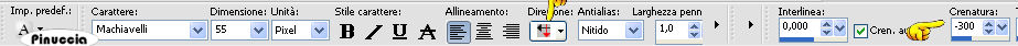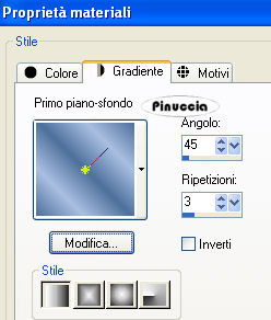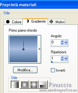 qui puoi trovare qualche risposta ai tuoi dubbi. Se l'argomento che ti interessa non è presente, ti prego di segnalarmelo. Questo tutorial è stato scritto con PSP X2, ma può essere eseguito anche con le altre versioni di PSP. Per tradurlo, l'ho eseguito con PSP X. Occorrente: Materiale qui I tubes che ho usato sono di Jet e Gini. Rispetta il lavoro degli autori e mantieni inalterati i tubes. Filtri: Graphics Plus qui Apri una nuova immagine trasparente 600 x 450 pixels. Imposta il colore di primo piano con #4d709c, e il colore di sfondo con #aabfe1. Passa il colore di primo piano a Gradiente di primo piano/sfondo, con i seguenti settaggi. ![]() Riempi l'immagine trasparente con il gradiente.Regola>Sfocatura>Sfocatura gaussiana - raggio 20. ![]() Apri RoseDreams_TubedByGini_06-17-06.psp, e vai a Modifica>Copia. Torna al tuo lavoro e vai a Modifica>Incolla come nuovo livello. Immagine>Rifletti. Immagine>Ridimensiona, all'85%, tutti i livelli non selezionato. Sposta le rose in basso a sinistra.Vedi il mio esempio per orientarti. Regola>Messa a fuoco>Metti a fuoco. Abbassa l'opacità di questo livello al 38%. Apri jet-womanface1-september-20081.psp. Posizionati sul livello della donna (e non su quello dei petali). ![]() Modifica>Copia. Torna al tuo lavoro e vai a Modifica>Incolla come nuovo livello. Immagine>Ridimensiona, al 72%, tutti i livelli non selezionato. Regola>Messa a fuoco>Metti a fuoco. Sposta il tube completamente a destra.Livelli>Duplica. Livelli>Disponi>Sposta giù. Effetti>Effetti di distorsione>Vento - da destra, intensità 100. ![]() Regola>Sfocatura>Sfocatura gaussiana, raggio 20. Abbassa l'opacità di questo livello al 60%. Attiva il livello superiore. Effetti>Effetti 3D>Sfalsa ombra, con i seguenti settaggi, colore nero: ![]() Attiva nuovamente il tube jet-womanface1-september-20081.psp. Posizionati sul livello "Samengevoegd" (il livello dei petali) e vai a Modifica>Copia. Torna al tuo lavoro e vai a Modifica>Incolla come nuovo livello. Immagine>Ridimensiona, al 72%, tutti i livelli non selezionato. Regola>Messa a fuoco>Metti a fuoco. Sposta il tube in alto contro il bordo.Livelli>Duplica. Immagine>Rifletti. Sposta il livello un po' più a sinistra vicino agli altri petali,e un po' più in basso. Attiva il primo livello dei petali. Livelli>Duplica. Posiziona i petali un po' più in basso, come ti sembra meglio.Naturalmente, puoi controllare il mio esempio come indicazione. Ingrandisci l'immagine se ti può aiutare a vedere meglio e cancella i petali che si sovrappongono.Fai attenzione a posizionarti sul giusto livello prima di cancellare. Livelli>Unisci>Unisci tutto. Selezione>Seleziona tutto. Immagine>Aggiungi bordatura, 2 pixels, simmetriche, con il colore di sfondo. Selezione>Inverti. Effetti>Plugins>Graphics Plus - Cross Shadow. ![]() Effetti>Effetti 3D>Sfalsa ombra, con i seguenti settaggi, colore nero: ![]() Ripeti l'Effetto Sfalsa ombra, invertendo i valori verticale e orizzontale. ![]() Selezione>Seleziona tutto. Immagine>Aggiungi bordatura, 25 pixels, simmetriche, con il colore bianco. Selezione>inverti. Passa il colore di primo piano a Gradiente di primo piano/sfondo, con i seguenti settaggi. ![]() Riempi la selezione con il gradiente.Effetti>Effetti di trama>Veneziana. ![]() Selezione>Seleziona tutto. Immagine>Aggiungi bordatura, 2 pixel, simmetriche, con il colore di sfondo. Selezione>Inverti. Effetti>Plugins>Graphics Plus - Cross Shadow, con i settaggi precedenti. Effetti>Effetti 3D>Sfalsa ombra, con i seguenti settaggi colore nero. ![]() Ripeti l'Effetto Sfalsa ombra, invertendo i valori verticale e orizzontale. ![]() Selezione>Deseleziona. Scegli un bel font. Per il mio esempio ho usato il font Machiavelli, direzione verticale, crenatura -300 ![]() dovrai regolare la dimensione a seconda della lunghezza del testo e della versione di PSP Oggetti>Allinea>Centra vert. nella tela. Selezione>Da oggetto vettoriale. Selezione>Modifica>Contrai - 1 pixel. Livelli>Converti in livello raster. Effetti>Plugins>Graphics Plus - Cross Shadow, con i settaggi precedenti. Selezione>Deseleziona. Sposta il testo a sinistra.Effetti>Effetti 3D>sfalsa ombra, con i seguenti settaggi, colore nero, 2 volte. ![]() Aggiungi il tuo nome e/o il tuo watermark. Livelli>Unisci>Unisci tutto e salva in formato jpg. ![]() ![]() Se hai problemi o dubbi, o trovi un link non funzionante, o anche soltanto per un saluto, scrivimi 11 Ottobre 2008 |