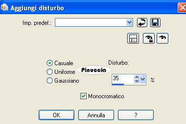 Regola>Aggiungi/Rimuovi disturbo>Aggiungi disturbo, con i settaggi precedenti.