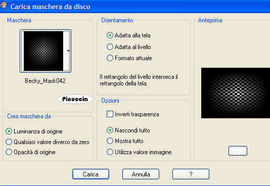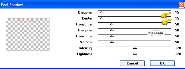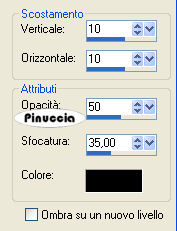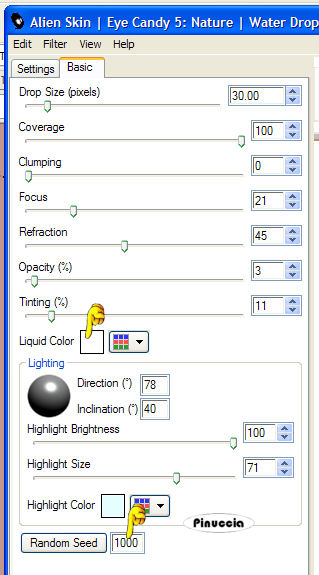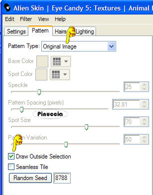 qui puoi trovare qualche risposta ai tuoi dubbi. Se l'argomento che ti interessa non è presente, ti prego di segnalarmelo. Questo tutorial è stato scritto con PSP X. Occorrente: Materiale qui Metti la maschera nella cartella Maschere. Metti gli ornamenti Wolke2 e Blasen-biene nella cartella Ornamenti. Metti il pennello nella cartella dei pennelli. Alien Skin Eye Candy 5 Texture qui alien Skin Eye Candy 5 Nature qui Imposta il colore di primo piano con #ca8773, e il colore di sfondo con il bianco (#ffffff). Apri "blubbblubb01.pspimage". Questa sarà la base del tuo lavoro. L'immagine non è vuota, ma contiene le selezioni del canale alfa. Livelli>Nuovo livello raster. Selezione>Carica/Salva selezione>Carica selezione da canale alfa. Carica la selezione Auswahl#1. ![]() Riempi la selezione con il colore di primo piano.Selezione>Deseleziona. Livelli>Carica/Salva maschera>Carica maschera da disco. Cerca e carica la maschera Becky_Mask042: ![]() Livelli>Unisci>Unisci gruppo. Livelli>Nuovo livello raster. Selezione>Carica/Salva selezione>Carica selezione da canale alfa. Carica nuovamente la selezione Auswahl#1 , e riempila con il colore di primo piano.Selezione>Modifica>Contrai, di 15 pixels. Premi sulla tastiera il tasto CANC ![]() Selezione>Deseleziona. Effetti>Plugins>Eye Candy 5 - Textures - Animal Fur. ![]() ![]() Apri il tube bathtub03.psp, e vai a Modifica>Copia. Torna al tuo lavoro e vai a Modifica>Incolla come nuovo livello. Immagine>Ridimensiona, al 120%, tutti i livelli non selezionato. Sposta questo tube in basso sul bordo.Apri il tube beauty1350.psp, e vai a Modifica>copia. Torna al tuo lavoro e vai a Modifica>Incolla come nuovo livello. Immagine>Ridimensiona, al 90%, tutti i livelli non selezionato. Posiziona la donna nella vasca a sinistra,in modo che le scarpe tocchino il bordo superiore. Attiva lo strumento Gomma , con i seguenti settaggi.![]() Cancella attentamente la schiuma che oltrepassa il bordo della vasca. ![]() Attiva lo strumento Ornamento e seleziona "Wolke 2".Applicalo cliccando più volte intorno alla donna, in modo che sembri schiuma. Attiva nuovamente lo strumento Gomma , ma impostando la durezza a 0,e cancella le eventuali tracce di schiuma all'esterno della vasca. Dovresti avere qualcosa di simile a questo: ![]() Assicurati di essere posizionato sul livello del tube della donna (che è il livello superiore). Effetti>Effetti 3D>Sfalsa ombra, con i seguenti settaggi; attenzione! Ombra su nuovo livello è selezionato. ![]() Rimani sul livello dell'ombra. Attiva nuovamente lo strumento Gomma ,e cancella il disturbo dell'ombra sul bordo della vasca. Attiva ora il livello superiore. Livelli>Nuovo livello raster. Attiva lo strumento Ornamento ![]() Cerca e seleziona l'ornamento Blasen-biene. Applicalo più volte sull'immagine a tuo piacimento. Cambia la modalità di miscelatura di questo livello in Luminanza (esistente), e abbassa l'opacità al 65%. Immagine>Dimensione tela: 770 x 570 pixel, e poi imposta manualmente i settaggi indicati nell'esempio. ![]() Attiva il livello inferiore e riempilo con il bianco.Attiva il livello della vasca - Raster 2. Effetti>Effetti 3D>Sfalsa ombra, con i settaggi precedenti, ma questa volta togliendo la selezione a Ombra su nuovo livello. ![]() Attiva il livello di sfondo. Selezione>Seleziona tutto. Selezione>Modifica>Contrai, di 2 pixels. Selezione>Inverti. Riempi con il colore di primo piano.Selezione>Deseleziona. Livelli>Nuovo livello raster. Attiva lo strumento Pennello ,cerca e seleziona il pennello blubbblubb-biene, e applicalo in alto al centro. Io ho applicato l'Effetto Plugins Greg's Factory Output II - Pool Shadow, con i seguenti settaggi: ![]() Decidi tu se fare altrettanto. Effetti>Effetti 3D>Sfalsa ombra, con i settaggi precedenti. Se vuoi, aggiungi il tuo nome. Per il mio testo ho usato il font Neville Script. Livelli>Unisci>Unisci tutto. Se vuoi fermarti qui, salva in formato jpg. ![]() Se vuoi animare la tag, continua. Animazione Attiva lo strumento Selezione a mano libera , da punto a punto,e seleziona la schiuma. ![]() Selezione>Modifica>Espandi, di 15 pixels. Effetti>Plugins>Eye Candy 5 - Nature - Waterdrops, con i seguenti settaggi. ![]() Attenzione che sia impostato il colore bianco. Selezione>Deseleziona. Modifica>Copia. Apri Animation Shop. Modifica>Incolla>Incolla come nuova animazione. Ritorna in PSP. Modifica>Annulla azione Deseleziona. Modifica>Annulla azione Water Drops. Effetti>Plugins>Eye Candy 5 - Nature - Water Drops, con i settaggi precedenti, ma questa volta clicca sul tasto Random Seed. Selezione>Deseleziona. Modifica>Copia. Torna in Animation Shop. Modifica>Incolla>Incolla dopo il fotogramma corrente. Adesso la tua animazione ha due fotogrammi. Ancora una volta in PSP. Modifica>Annulla azione Deseleziona. Modifica>Annulla azione Water Drops. Ripeti l'Effetto Water Drops, cliccando sul tasto Random Seed. Selezione>Deseleziona. Modifica>Copia. Ritorna in Animation Shop. Modifica>Incolla>Incolla dopo il fotogramma corrente. Modifica>Seleziona tutto. Animazione>Proprietà fotogramma, e imposta la velocità a 15. ![]() Per controllare il risultato clicca su Visualizza , e salva in formato gif.![]() Se hai problemi o dubbi, o trovi un link non funzionante, o anche soltanto per un saluto, scrivimi. 26 Settembre 2007 |