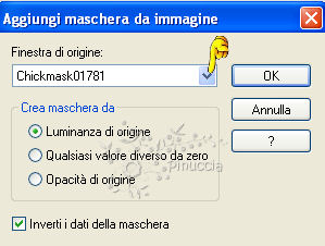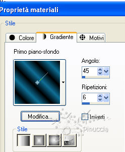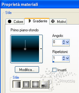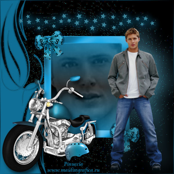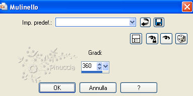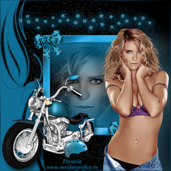 qui puoi trovare qualche risposta ai tuoi dubbi. Se l'argomento che ti interessa non è presente, ti prego di segnalarmelo. Questo tutorial è stato scritto con PSP X2, ma può essere eseguito anche con le altre versioni di PSP. Per tradurlo, ho usato PSP X. ©Biene - tutti i diritti riservati. Il © della traduzione è mio. Occorrente: Il tube di una donna e il tube di un viso (o una parte ingrandita del tube). Il resto del materiale qui Il tube che ho usato per il mio esempio è di Lori Rhae. Ho usato anche lo scrapkit SD Extreme Biker Chick Un ringraziamento ai creatori di tubes dei vari gruppi cui appartengo. Il watermark di ognuno è inserito nei tubes. Per favore, rispetta il lavoro degli autori: non cambiare il nome del file e non rimuovere il watermark. Il © appartiene agli artisti originali. Metti la maschera 20-20.bmp nella cartella Maschere. Scegli un bel colore dal tuo tube e impostalo come colore di primo piano (il mio #106f96). Imposta il colore di sfondo con il nero. Apri una nuova immagine trasparente 600 x 600 pixels, e riempila con il colore di sfondo.Livelli>Nuovo livello raster. Riempi con il colore di primo piano.Apri la maschera Chickmask01781.jpg e minimizzala. Torna al tuo lavoro. Livelli>Nuovo livello maschera>Da immagine apri il menu sotto la finestra di origine e vedrai la lista dei files aperti. Seleziona la maschera con i seguenti settaggi: ![]() Livelli>Unisci>Unisci gruppo. Apri la maschera lensflare.jpg e minimizzala. Torna al tuo lavoro. Livelli>Nuovo livello raster. Riempi con il colore di primo piano.Livelli>Nuovo livello maschera>Da immagine: seleziona la maschera con i seguenti settaggi: ![]() Livelli>Unisci>Unisci gruppo. Immagine>ridimensiona, al 125%, tutti i livelli non selezionato. Effetti>Effetti di distorsione>Mulinello - 360 gradi: ![]() Cambia la modalità di miscelatura di questo livello in Dissolvi. Effetti>Effetti di bordo>Aumenta. Livelli>Disponi>Sposta giù. Abbassa l'opacità di questo livello al 50%. ![]() Livelli>Unisci>Unisci giù. Attiva nuovamente il livello superiore. Dallo scrapkit apri SD EXTREME FRAME 4.png. Duplicalo usando sulla tastiera la combinazione di tasti maiuscola+D e chiudi l'originale. Attiva lo strumento Pennello Trasforma in destinazione ![]() dimensione 80 - opacità 50, e passa il pennello sulla cornice, che assumerà il colore di primo piano. Immagine>ridimensiona, al 18%, tutti i livelli non selezionato (non preoccuparti se vedi la cornice così piccola, va bene così). Modifica>Copia. Torna al tuo lavoro e vai a Modifica>Incolla come nuovo livello. E' correttamente posizionata. Non occorre spostarla. Attiva lo strumento Bacchetta magica ,e clicca al centro della cornice per selezionarla. ![]() Selezione>Modifica>Espandi - 3 pixels. Livelli>Nuovo livello raster. Passa il colore di primo piano a Gradiente, con i seguenti settaggi: ![]() Riempi la selezione con il gradiente.Selezione>Deseleziona. Livelli>Disponi>Sposta giù. Apri il tuo tube del viso oppure ingrandisci una parte del tuo tube della donna. Modifica>Copia. Torna al tuo lavoro e vai a Modifica>Incolla come nuovo livello. Posiziona correttamente il tube nell'area della cornice.Attiva il livello soprastante (la cornice). Clicca con la bacchetta magica nell'area esterna alla cornice.Attiva il livello sottostante (il livello del tube). Premi sulla tastiera il tasto CANC ![]() Selezione>Deseleziona. Livelli>Carica/Salva maschera>Carica maschera da disco. Cerca e carica la maschera 20-20.bmp: ![]() Livelli>Unisci>Unisci gruppo. Ripeti l'applicazione della maschera. Valuta l'opportunità di questa ripetizione a seconda del tube che stai usando Cambia la modalità di miscelatura di questo livello in Luminanza (esistente), e abbassa l'opacità al 68%. anche questi settaggi dovranno essere regolati a tua discrezione a seconda del tube che stai usando. Livelli>Unisci>unisci giù, per unire il livello del viso con il livello del gradiente. Attiva nuovamente il livello superiore (la cornice). Effetti>Effetti 3D>Sfalsa ombra, con i seguenti settaggi, colore nero. ![]() Livelli>Unisci>Unisci giù e avrai la cornice in un unico livello. Livelli>Duplica. Immagine>ruota per gradi - 15 gradi a destra. ![]() Dallo scrapkit apri SD EXTREME BOW 2.png e vai a Modifica>Copia. Torna al tuo lavoro e vai a Modifica>Incolla come nuovo livello. Immagine>Ridimensiona, al 9%, tutti i livelli non selezionato. Immagine>Ruota per gradi - 15 gradi a sinistra: ![]() Regola>Messa a fuoco>Metti a fuoco. Sposta il fiocco sulla cornice, in alto a sinistra.Livelli>Duplica. Immagine>Rifletti. Con le frecce della tastiera sposta il duplicato in basso.per l'uso delle frecce abbinato allo strumento Spostamento vedi qui Dallo scrapkit apri SD EXTREME BORDER STARS.png e vai a Modifica>Copia. Torna al tuo lavoro e vai a Modifica>Incolla come nuovo livello. Immagine>Ridimensiona, al 12%, tutti i livelli non selezionato. Sposta questo livello in alto.Effetti>Effetti 3D>sfalsa ombra, con i seguenti settaggi, colore di primo piano. ![]() Ripeti l'Effetto Sfalsa ombra, con gli stessi settaggi. Dallo scrapkit apri SD EXTREME MOTORCYCLE.png e vai a Modifica>Copia. Torna al tuo lavoro e vai a Modifica>Incolla come nuovo livello. Immagine>Ridimensiona, al 35%, tutti i livelli non selezionato. Regola>Messa a fuoco>Metti a fuoco. Sposta la moto in basso a sinistra.Effetti>Effetti 3D>Sfalsa ombra, con i seguenti settaggi, colore nero: ![]() Dallo scrapkit apri SD EXTREME HELMET.png e vai a Modifica>Copia. Torna al tuo lavoro e vai a Modifica>Incolla come nuovo livello. Immagine>Ridimensiona, al 9%, tutti i livelli non selezionato. Regola>Messa a fuoco>Metti a fuoco. Sposta l'elmetto in basso a sinistra, vedi il mio esempio per orientarti.Effetti>Effetti 3D>Sfalsa ombra, con i seguenti settaggi, colore nero. ![]() Apri il tuo tube della donna e vai a Modifica>Copia. Torna al tuo lavoro e vai a Modifica>Incolla come nuovo livello. Sposta il tube a destra.Livelli>Duplica. Effetti>Effetti di distorsione>Vento -