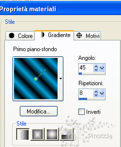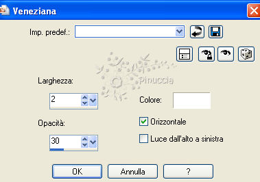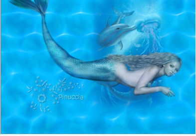 qui puoi trovare qualche risposta ai tuoi dubbi. Se l'argomento che ti interessa non è presente, ti prego di segnalarmelo. Questo tutorial è stato scritto con PSP X2, ma può essere eseguito anche con le altre versioni di PSP. Per tradurlo, ho usato PSP X. ©Biene - tutti i diritti riservati. Il © della traduzione è mio. Occorrente: A scelta due tubes di una sirena e il tube di un delfino. Il resto del materiale qui Le mie sirene sono ©Ana Rasha Se vuoi usare questi tube devi avere il permesso di Ana Rasha, o del gruppo di cui faccio parte. Il bel sito di Ana Rasha lo trovi http://anarasha.deviantart.com/qui Il tube del delfino è ©David Miller. Il suo sito http://www.mauiarts.com/ qui. Un ringraziamento ai creatori di tubes dei vari gruppi cui appartengo. Il watermark di ognuno è inserito nei tubes. Per favore, rispetta il lavoro degli autori: non cambiare il nome del file e non rimuovere il watermark. Il © appartiene agli artisti originali. Filtri: Graphics Plus - Cross Shadow qui Imposta il colore di primo piano con #01a2da, e il colore di sfondo con il nero. Apri l'immagine di sfondo background_bluekiss_biene.jpg. Duplicala usando sulla tastiera la combinazione di tasti maiuscola+D e chiudi l'originale. La copia sarà la base del tuo lavoro. Apri il tube del delfino - mds11069 Nosey Art by David Miller.pspimage - e vai a Modifica>copia. Torna al tuo lavoro e vai a Modifica>Incolla come nuovo livello. Immagine>Ridimensiona, al 70%, tutti i livelli non selezionato. Regola>Messa a fuoco>Metti a fuoco. Spostalo in alto a destra, vedi il mio esempio per orientarti.Apri il tube della prima sirena - AnaRashaMermaidConnyTube - e vai a Modifica>Copia. Torna al tuo lavoro e vai a Modifica>Incolla come nuovo livello. Immagine>Ruota per gradi - 90 gradi a sinistra. ![]() Immagine>Rifletti. Immagine>Ridimensiona, all'85%, tutti i livelli non selezionato. Regola>Messa a fuoco>Metti a fuoco. Spostalo un po' più a sinistra, e in basso - vedi il mio esempio.![]() Abbassa l'opacità di questo livello al 76%. Apri il secondo tube della sirena - AnaRasha_BlueKisMist_Diba.psd - e vai a Modifica>copia. Torna al tuo lavoro e vai a Modifica>Incolla come nuovo livello. Immagine>Ridimensiona, al 115%, tutti i livelli non selezionato. Sposta il tube un po' più in basso vicino al bordo.Livelli>Unisci>Unisci tutto. ![]() Modifica>copia. Selezione>Seleziona tutto. Immagine>Aggiungi bordatura - 1 pixel, simmetriche, con il colore bianco. Selezione>Inverti. Passa il colore di primo piano a Gradiente: ![]() Riempi la selezione con il gradiente.Selezione>Innalza selezione a livello. Effetti>Effetti 3D>sfalsa ombra, con i seguenti settaggi, colore nero. ![]() Ripeti l'Effetto Sfalsa ombra, cambiando verticale e orizzontale con -1. Selezione>Seleziona tutto. Immagine>Aggiungi bordatura, 20 pixels, simmetriche, con il colore bianco. Selezione>Inverti. Modifica>Incolla nella selezione. Regola>Sfocatura>Sfocatura gaussiana - raggio 5: ![]() Effetti>Effetti di trama>Veneziana: ![]() Effetti>Plugins>Graphics Plus - Cross Shadow: ![]() Selezione>inverti. Effetti>Effetti 3D>sfalsa ombra, con i seguenti settaggi, colore nero. ![]() Ripeti l'Effetto Sfalsa ombra, cambiando verticale e orizzontale con -2. Selezione>Seleziona tutto. Immagine>Aggiungi bordatura, 1 pixel, simmetriche, con il colore bianco. Selezione>inverti. Riempi la selezione con il gradiente.Effetti>Effetti 3D>sfalsa ombra, con i seguenti settaggi, colore nero. ![]() Ripeti l'Effetto Sfalsa ombra, cambiando verticale e orizzontale con -1. Selezione>Deseleziona. Aggiungi eventuali copyright delle tue immagini, il tuo nome e/o il tuo watermark. Livelli>Unisci>Unisci tutto e salva in formato jpg. Se hai problemi o dubbi, o trovi un link non funzionante, o anche soltanto per un saluto, scrivimi