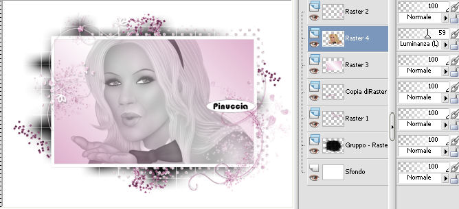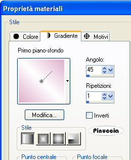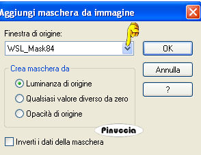 qui puoi trovare qualche risposta ai tuoi dubbi. Se l'argomento che ti interessa non è presente, ti prego di segnalarmelo. Questo tutorial è stato scritto con PSP X2, ma può essere eseguito anche con le altre versioni di PSP. Per tradurlo, ho usato PSP X. ©Biene - tutti i diritti riservati. Il © della traduzione è mio. Occorrente: Materiale qui Un tube a scelta. Per il mio esempio ho usato un tube ©Voodoo. Un piccolo coniglio che puoi trovare nello scrapkit pasquale di Voodoo http://www.4shared.com/dir/3026720/452748a5/sharing.html qui Un accessorio glitterato: il mio fa parte dello scrapkit Sweet Angel di Lacarolita che trovi http://lacarolitasdesignz.blogspot.com/ qui La cornice Frame4 von Rachel che trovi http://scrapsofenchantment.blogspot.com/ qui La maschera WSL_Mask84.jpg di Weesscotslass che trovi http://www.weescotslasscreations.co.uk/ qui (clicca su Navigate e poi Download). Un ringraziamento ai creatori di tubes dei vari gruppi cui appartengo. Il watermark di ognuno è inserito nei tubes. Per favore, rispetta il lavoro degli autori: non cambiare il nome del file e non rimuovere il watermark. Il © appartiene agli artisti originali. ![]() Apri tutto il materiale in PSP, compresa la maschera WSL_Mask84.jpg. Imposta il colore di primo piano con un colore chiaro scelto dal tube: il mio #deb0cc, e il colore di sfondo con il nero. Apri una nuova immagine bianca 700 x 500 pixels. Livelli>Nuovo livello raster. Riempi con il colore nero (tasto destro del mouse).Livelli>Nuovo livello maschera>Da immagine. Apri il menu sotto la finestra di origine e vedrai la lista dei files aperti, tra questi la maschera. Seleziona la maschera WSL_Mask84. ![]() Livelli>Unisci>Unisci gruppo. Apri il glitter Lacarolita_Sweet Angel glitter 2.png. Attiva lo strumento Selezione , rettangolo,e seleziona la stella. Selezione>Inverti. Modifica>Copia. Torna al tuo lavoro e vai a Modifica>Incolla come nuovo livello. Regola>Tonalità e saturazione>Viraggio. ![]() Sposta il glitter in alto a destra.Livelli>Duplica. Immagine>Rifletti. Immagine>Capovolgi. ![]() Apri Frame4_byRachel_SOE09.psd e vai a Modifica>Copia. Torna al tuo lavoro e vai a Modifica>Incolla come nuovo livello. Immagine>Ridimensiona, all'80%, tutti i livelli non selezionato. Sposta la cornice un po' più a destra.![]() Imposta il colore di sfondo con il bianco. Passa il colore di primo piano a Gradiente. ![]() Attiva lo strumento Selezione , rettangolo, sfumatura 0,e seleziona la cornice della maschera. ![]() Livelli>Nuovo livello raster. Livelli>Disponi>Sposta giù. Riempi con il gradiente.Apri il tuo tube e seleziona il viso o la parte che vuoi inserire nella cornice. Modifica>Copia. Torna al tuo lavoro e vai a Modifica>Incolla come nuovo livello. Posiziona il tube nell'area selezionata.Selezione>Inverti. Premi sulla tastiera il tasto CANC. Cambia la modalità di miscelatura di questo livello in Luminanza (esistente), e abbassa l'opacità al 59%. ![]() Livelli>Duplica, e attiva il livello sottostante dell'originale. Regola>Sfocatura>Sfocatura gaussiana - raggio 3. ![]() Cambia la modalità di miscelatura di questo livello in Luce diffusa, e abbassa l'opacità all'88%. Attiva il livello soprastante del duplicato. Effetti>Effetti 3D>Sfalsa ombra, con il colore nero. ![]() Attiva il livello superiore della cornice. Effetti>Effetti 3D>Sfalsa ombra, con il colore nero. ![]() Ripeti l'Effetto Sfalsa ombra, cambiando verticale e orizzontale con -1. Apri wordart_bunny_kisses_biene.pspimage e vai a Modifica>Copia. Torna al tuo lavoro e vai a Modifica>Incolla come nuovo livello. Posiziona il testo dove preferisci, o vedi il mio esempio.Apri il tuo tube e vai a Modifica>Copia. Torna al tuo lavoro e vai a Modifica>Incolla come nuovo livello. Immagine>Rifletti. Immagine>Ridimensiona, all'80%, tutti i livelli non selezionato. Regola>Messa a fuoco>Metti a fuoco. Sposta il tube a sinistra.Effetti>Effetti 3D>Sfalsa ombra, con il colore nero. ![]() Apri gras_byBilly.pspimage e vai a Modifica>Copia. Torna al tuo lavoro e vai a Modifica>Incolla come nuovo livello. Immagine>Ridimensiona, al 30%, tutti i livelli non selezionato. Regola>Messa a fuoco>Metti a fuoco. Sposta l'erba in basso a sinistra, sopra il taglio delle gambe del tube, al centro.Livelli>Duplica. Immagine>ruota per gradi - 18 gradi a sinistra. Regola>Messa a fuoco>Metti a fuoco. Sposta questo livello un po' più a sinistra.Attiva il livello sottostante dell'originale. Livelli>Duplica. Immagine>Ruota per gradi - 18 gradi a destra. Regola>Messa a fuoco>Metti a fuoco. Sposta questo livello un po' più a sinistra.Aggiungi un paio di uova di pasqua e posizionali sull'erba.Ruotali a tuo piacimento. Apri il tube di un coniglietto dallo scrapkit di Voodoo e vai a Modifica>Copia. Torna al tuo lavoro e vai a Modifica>Incolla come nuovo livello. Immagine>Ridimensiona, una volta al 20% e una volta all'85%, tutti i livelli non selezionato. Posiziona il coniglietto davanti alle uova.Se vuoi, aggiungi dei cuori sulla mano del tube. Non dimenticare di aggiungere eventuali copyright delle immagini usate. Aggiungi il tuo nome e/o il tuo watermark su un nuovo livello. Livelli>Unisci>Unisci tutto e salva in formato jpg. Se hai problemi o dubbi, o trovi un link non funzionante, o anche soltanto per un saluto, scrivimi