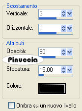 Effetti>Effetti 3D>Sfalsa ombra, con i seguenti settaggi, colore nero: