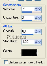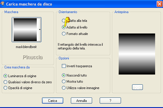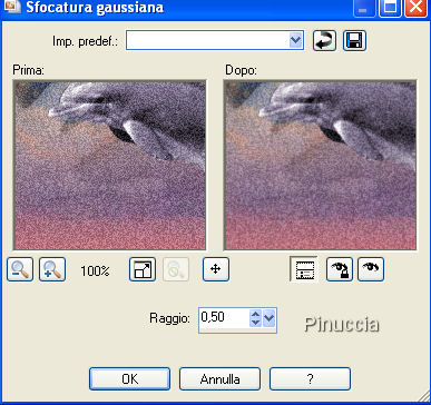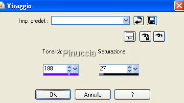 qui puoi trovare qualche risposta ai tuoi dubbi. Se l'argomento che ti interessa non è presente, ti prego di segnalarmelo. Questo tutorial è stato scritto con PSP X, ma può essere eseguito anche con le altre versioni di PSP. Occorrente: Materiale qui Metti le maschere nella cartella Maschere di PSP. Filtri: Greg's Factory Output II qui Apri Lunar_Seas.jpg. Sulla tua tastiera, premi la combinazione di tasti Shift (maiuscola)+D, per duplicare l'immagine. Chiudi l'originale. La copia sarà la tua area di lavoro. Apri SS_1439_Misted.psp, e vai a Modifica>Copia. Torna al tuo lavoro e vai a Modifica>Incolla come nuovo livello. Livelli>Carica/Salva maschera>Carica maschera da disco. Cerca e carica la maschera 20-20: ![]() Livelli>Unisci>Unisci gruppo. Abbassa l'opacità di questo livello al 48%. Sposta l'uomo in alto al centro, vedi il mio esempio.Apri FBR_mermaidmoon 6-19-06 388 KB.psp. e vai a Modifica>Copia. Torna al tuo lavoro e vai a Modifica>Incolla come nuovo livello. Livelli>Carica/Salva maschera>Carica maschera da disco. Cerca e carica la maschera maskblendbreit, con i seguenti settaggi. ![]() il tuo esempio sarà diverso dal mio. Poichè mi sembrava che il viso della donna non si vedesse bene, ho preferito usare il settaggio "adatta alla tela" Livelli>Unisci>Unisci gruppo. Attiva lo strumento Gomma e cancella le ali della sirena.Apri dolphin1-jh.Psp, e vai a Modifica>Copia. Torna al tuo lavoro e vai a Modifica>Incolla come nuovo livello. Immagine>Ridimensiona, al 60%, tutti i livelli non selezionato. Posiziona il delfino di fronte alla donna.Regola>Saturazione e tonalità>Viraggio: ![]() Regola>Messa a fuoco>Metti a fuoco. Per vedere meglio, ingrandisci l'immagine almeno del 150%, usando la rotellina del mouse o lo strumento Zoom ,e cancella - con cautela - le onde sotto il delfino, che disturbano la visione d'insieme. ![]() Livelli>Unisci>Unisci tutto. Modifica>Copia. Modifica>Incolla come nuovo livello. Immagine>Ridimensiona, al 90%, tutti i livelli non selezionato. Effetti>Effetti 3D>Sfalsa ombra, con i seguenti messaggi. ![]() Ripeti l'Effetto Sfalsa ombra, ma cambiando verticale e orizzontale a -4. Attiva il livello di sfondo. Regola>Aggiungi/rimuovi disturbo>Aggiungi disturbo, con i seguenti settaggi. ![]() Immagine>Sfocatura>Sfocatura gaussiana: ![]() Per impostare i valori decimali, devi usare la virgola e non il punto. Imposta il colore di sfondo con #9f6977. Attiva lo strumento Testo , scegli un bel font, crea come vettore, con i settaggi adeguati al testo che vuoi scrivere.Io ho usato il font Hancock Scrivi il tuo testo e posizionalo in basso. Livelli>Converti in livello raster. Effetti>Plugins>Greg's Factory Output - Pool Shadow, con i settaggi standard: ![]() Effetti>Effetti 3D>Sfalsa ombra: ![]() Aggiungi il tuo nome e/o il tuo watermark. Livelli>Unisci>Unisci tutto, e salva in formato jpg. ![]() Se hai problemi o dubbi, o trovi un link non funzionante, o anche soltanto per un saluto, scrivimi. 12 Novembre 2007 |