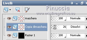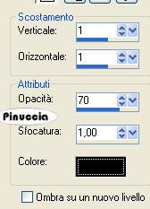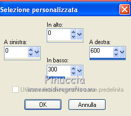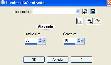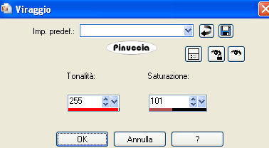 qui puoi trovare qualche risposta ai tuoi dubbi. Se l'argomento che ti interessa non è presente, ti prego di segnalarmelo. Questo tutorial è stato scritto con PSP X2, ma può essere eseguito anche con le altre versioni di PSP. Per tradurlo, l'ho eseguito con PSP X. Occorrente: Un tube a scelta. Il resto del materiale qui Il tube che ho usato è di PopeyeWong. Il materiale scrap fa parte dello Scrapkit CatTitude di Scrappy Expressions. Trovi i termini d'uso di Melissa nello zip. La maschera è di Vix. Rispetta il lavoro degli autori e mantieni inalterati i tubes. Filtri: Graphics Plus qui Metti la maschera Vix_Mask142 nella cartella Maschere. Scegli un colore dal tuo tube e impostalo come colore di primo piano. Per il mio esempio ho usato #d96b6b. Imposta il colore di sfondo con il nero. Apri una nuova immagine trasparente 600 x 600 pixels, e riempila con il nero.Livelli>Nuovo livello raster. Riempi con il colore di primo piano.Livelli>Carica/Salva maschera>Carica maschera da disco. Cerca e carica la maschera Vix_Mask142.jpg. ![]() Livelli>Unisci>Unisci tutto. Sposta questo livello in alto.per evitare spostamenti laterali, puoi usare le frecce della tastiera. Sull'uso delle frecce applicato allo strumento Spostamento, vedi qui Attiva lo strumento Selezione ![]() clicca sull'icona Selezione personalizzata ![]() e imposta i seguenti settaggi: ![]() Selezione>inverti. Premi sulla tastiera il tasto CANC ![]() Selezione>Deseleziona. Livelli>Duplica. Immagine>Capovolgi. Chiudi il livello Raster 1. Livelli>Unisci>Unisci visibile, e rinomina questo livello "Maschera". Rendi nuovamente visibile il livello Raster 1. Livelli>Duplica. Immagine>Ridimensiona, al 101%, tutti i livelli non selezionato. Livelli>Disponi>Sposta giù. Nella paletta dei livelli cambia la modalità di miscelatura di questo livello in Dissolvi, e abbassa l'opacità al 26%. ![]() Attiva nuovamente il livello Maschera. Effetti>Plugins>Graphics Plus - Cross Shadow, con i settaggi standard. ![]() Effetti>effetti 3D>Sfalsa ombra, con i seguenti settaggi, colore nero: ![]() Apri SE_CatTitude_Frame.psp e vai a Modifica>Copia. Torna al tuo lavoro e vai a Modifica>incolla come nuovo livello. Immagine>Ridimensiona, al 125%, tutti i livelli non selezionato. Sposta la cornice un po' più in basso.Regola>Tonalità e saturazione>Tonalità/Saturazione/Luminosità: ![]() Questi sono i settaggi usati per il mio esempio. Se stai usando altri colori, dovrai adattare i tuoi settaggi a questi colori. Sull'uso del Viraggio (per la scelta dei colori) vedi qui Poi, per il settaggio della Luminosità, regolati guardando la finestra dell'anteprima e scegliendo quello che ti sembra più adatto. Attiva lo strumento Bacchetta magica ![]() ![]() e clicca al centro della cornice. Selezione>Modifica>Espandi - 3 pixels. Livelli>Nuovo livello raster. Riempi la selezione con il colore nero di sfondo.Mantieni selezionato. Livelli>Disponi>Sposta giù. Livelli>Nuovo livello raster. Apri il tuo tube. Duplicalo - usando sulla tastiera la combinazione di tasti shift(maiuscola)+D. Lascia l'originale aperto perchè ti servirà ancora. Attiva la copia. Immagine>Rifletti. questo passaggio dipende dalla posizione del tube. Poichè la copia deve essere speculare al tube, puoi già renderti conto se devi riflettere la copia del tube o l'originale. Nel caso dovessi riflettere l'originale, salta questo passaggio e rimanda la riflessione quando userai il tube. Attiva lo strumento Selezione , rettangolo,e seleziona la parte del tube che vuoi vedere nella cornice. Modifica>Copia. Torna al tuo lavoro e vai a Modifica>Incolla nella selezione. Selezione>Deseleziona. Sposta il livello in basso a sinistra sul bordo della cornice.guarda il mio esempio finale. Devi fare questo perchè, proseguendo, il tube coprirà la parte destra. Quindi adesso devi essere certo di quello che lascerai all'interno della cornice. Immagine>Ruota per gradi - 6 gradi a sinistra. ![]() Posiziona correttamente l'immagine nella cornice.Attiva il livello della cornice (Raster 2). Clicca all'interno della cornice con la bacchetta magica ![]() Selezione>Modifica>Espandi - 3 pixels. Selezione>inverti. Attiva nuovamente il livello della piccola immagine (Raster 4). Premi sulla tastiera il tasto CANC ![]() Selezione>Deseleziona. Regola>Messa a fuoco>Accentua messa a fuoco. Abbassa l'opacità di questo livello al 45%. Livelli>Unisci>Unisci giù. Attiva il tuo tube originale. Se NON l'hai fatto sulla copia ricordati di farlo ora: Immagine>Rifletti. Modifica>Copia. Torna al tuo lavoro e vai a Modifica>Incolla come nuovo livello. Sposta il tube a destra,guarda l'esempio finale per orientarti. Posizionalo correttamente a metà della cornice. Considera che dovrai cancellare la parte del tube che eccede.Quando sei soddisfatto della posizione, procedi per cancellare la parte eccedente. Livelli>Duplica. Livelli>Disponi>Porta in alto. Effetti>Effetti 3D>sfalsa ombra, con i seguenti settaggi, colore nero: ![]() Attiva lo strumento Gomma ![]() e cancella tutto ciò che sta al di sotto della cornice. ![]() Attiva il livello originale del tube (quello che sta sotto la cornice). Cancella eventuali tracce del tube sotto la cornice.Livelli>Duplica. Livelli>Disponi>Sposta giù. Effetti>Effetti di distorsione>Vento - da destra, intensità 80. ![]() Regola>Sfocatura>Sfocatura gaussiana, raggio 15. ![]() Abbassa l'opacità di questo livello al 68%. Attiva il livello Raster 1. Immagine>Dimensione tela - 700 x 700 pixels. Seleziona il bordo trasparente con la bacchetta magica ![]() se ci sono tracce residue della cancellatura del tube eliminale con la gomma ![]() Riempi la selezione con il nero.Selezione>Deseleziona. Attiva nuovamente il livello superiore. Apri SE_CatTitude_PageTitle.psp. Regola>Tonalità e saturazione>Viraggio: ![]() Regola>Luminosità e contrasto>Luminosità e contrasto, 2 volte: ![]() Modifica>Copia. Torna al tuo lavoro e vai a Modifica>Incolla come nuovo livello. Immagine>Ridimensiona, al 75%, tutti i livelli non se