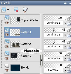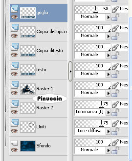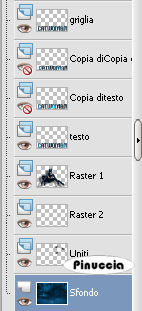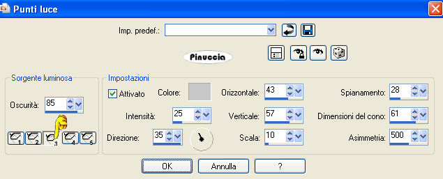 qui puoi trovare qualche risposta ai tuoi dubbi. Se l'argomento che ti interessa non è presente, ti prego di segnalarmelo. Questo tutorial è stato scritto con PSP X2, ma può essere eseguito anche con le altre versioni di PSP. Per tradurlo, ho usato PSP X. ©Biene - tutti i diritti riservati. Il © della traduzione è mio. Occorrente: A scelta un tube adatto al tema. Il resto del materiale qui Il mio tube è ©Kimstyle-Calvin Hollywood. Il sito di Kimstyle lo trovi http://www.kimstyle.de/qui Ho usato anche tubes di Kara, SKF e Farouche. Un ringraziamento ai creatori di tubes dei vari gruppi cui appartengo. Il watermark di ognuno è inserito nei tubes. Per favore, rispetta il lavoro degli autori: non cambiare il nome del file e non rimuovere il watermark. Il © appartiene agli artisti originali. Filtri: Graphics Plus - Cross Shadow qui FM Tile Tools - Blend Emboss qui Eye Candy 4000 - Glass qui Screenworks - Light Gauze qui ![]() Ti servirà anche Animation Shop qui Apri il file di sfondo di Biene background_catwoman_biene.jpg. Duplicalo usando sulla tastiera la combinazione di tasti maiuscola+D e chiudi l'originale. La copia sarà la base del tuo lavoro. Apri gothscenic2.psp e vai a Modifica>Copia. Torna al tuo lavoro e vai a Modifica>Incolla come nuovo livello. Sposta il tube in alto a sinistra.Cambia la modalità di miscelatura di questo livello in Luminanza. Livelli>Duplica. Immagine>Rifletti. Attiva lo strumento Spostamento e usa le frecce della tastiera per spostare l'immagine a destra.sull'uso delle frecce abbinato allo strumento Spostamento vedi qui Dovresti avere questo. ![]() Attiva il livello superiore. Attiva lo strumento Gomma , dimensione 90, opacità 10,e cancella la striscia chiara al centro dell'immagine. ![]() Apri SKF_Wood115.07.psp e vai a Modifica>Copia. Torna al tuo lavoro e vai a Modifica>Incolla come nuovo livello. Immagine>Ridimensiona, al 109%, tutti i livelli non selezionato. Immagine>Rifletti. Sposta il tube in basso a destra.![]() Livelli>Disponi>Sposta giù. Cambia la modalità di miscelatura di questo livello in Luminanza, e abbassa l'opacità al 48%. Attiva lo strumento Gomma , posizionati sul livello superiore e cancella la parte scura in basso al centro.![]() Ritorna al livello sottostante. Attiva lo strumento Selezione , rettangolo, sfumatura 0,e traccia una selezione in basso a destra come nell'esempio. ![]() Modifica>Copia. Livelli>Nuovo livello raster. Modifica>Incolla nella selezione. Selezione>Deseleziona. Cambia la modalità di miscelatura di questo livello in Luminanza, e abbassa l'opacità al 48%. ![]() Immagine>Rifletti. Attiva nuovamente la gomma e cancella quello che disturba l'immagine.![]() Attiva il livello sottostante (Raster 2) e cancella gli alberi a sinistra. ![]() Attiva il livello superiore. Cancella la parte inferiore che copre gli alberi sulla destra.Alla fine dovresti avere pressappoco questo: ![]() Livelli>Unisci>Unisci tutto. Effetti>Plugins>FM Tile Tools - Blend Emboss con i settaggi standard. ![]() Apri KaraT314.psp e vai a Modifica>Copia. Attiva lo strumento Selezione a mano libera ![]() e seleziona un pipistrello. Modifica>Copia. Torna al tuo lavoro e vai a Modifica>Incolla come nuovo livello. Aggiungi quanti pipistrelli vuoi. Nel mio esempio ne ho aggiunti 3. Quando hai fatto, chiudi il livello di sfondo e vai Livelli>Unisci>Unisci visibile. Cambia la modalità di miscelatura di questo livello in Luce netta. Livelli>Nuovo livello raster. Attiva lo strumento Pennello , standard, dimensione 1,![]() Imposta il colore di primo piano con #d0272a. Applica il pennello in ogni occhio dei pipistrelli. Cambia la modalità di miscelatura di questo livello in Luminanza e abbassa l'opacità al 75%. Attiva il livello sottostante (Uniti) Cambia la modalità di miscelatura di questo livello in Luce diffusa, e abbassa l'opacità al 75%. ![]() Apri il tuo tube e vai a Modifica>Copia. Torna al tuo lavoro e vai a Modifica>Incolla come nuovo livello. Immagine>Ridimensiona, se e quanto necessario. Per il mio esempio ho ridimensionato una volta all'85%, e una volta al 95%, tutti i livelli non selezionato. Posiziona il tube come nel mio esempio.Effetti>Effetti 3D>sfalsa ombra, con i seguenti settaggi, colore nero. ![]() Apri il testo text_catwoman_biene.pspimage e vai a Modifica>Copia. Torna al tuo lavoro e vai a Modifica>Incolla come nuovo livello. Spostalo in basso.Livelli>Duplica. Effetti>Plugins>Screenworks - Light Gauze. Effetti>Effetti 3D>Sfalsa ombra, con i seguenti settaggi, colore nero. ![]() Rinomina questo livello "Griglia" (il titolo si riferisce all'effetto del filtro appena applicato). Chiudi il livello. Attiva il livello sottostante. Rinomina questo livello "testo". Effetti>Plugins>Eye Candy 4000 - Glass: imposta come colore #005982: ![]() Effetti>Effetti 3D>Sfalsa ombra, con i settaggi precedenti. Attiva il livello superiore. Riapri il livello e abbassa l'opacità al 58%. ![]() Livelli>Nuovo livello raster. Selezione>Seleziona tutto. Selezione>Modifica>Contrai - 5 pixels. Selezione>Inverti. Riempi la selezione con il colore nero.Livelli>Nuovo livello raster. Selezione>Seleziona tutto. Selezione>Modifica>Contrai - 2 pixels. Riempi la selezione con il colore #005982.Selezione>Modifica>Contrai - 1 pixel. Premi sulla tastiera il tasto CANC ![]() Selezione>Deseleziona. Effetti>Plugins>Graphics Plus - Cross Shadow: ![]() Effetti>Effetti 3D>sfalsa ombra, con i seguenti settaggi, colore nero. ![]() Aggiungi il tuo nome e/o il tuo watermark, senza dimenticare di aggiungere eventuali copyright delle immagini usate. Attiva il livello "Testo". Livelli>Duplica 2 volte. Attiva nuovamente il livello "testo". Effetti>Effetti di illuminazione - Punti luce, con i settaggi standard. ![]() Attiva il livello Copia di testo. Effetti>Effetti di illuminazione>Punti Luce. lascia i settaggi standard ma cambia il valore di Intensità con 15. ![]() poi attiva il punto luce 3 e imposta i seguenti settaggi: ![]() Chiudi questo livello. Attiva il livello della 