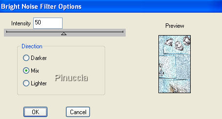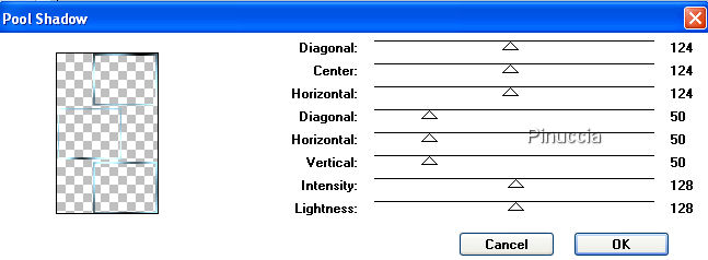 qui puoi trovare qualche risposta ai tuoi dubbi. Se l'argomento che ti interessa non è presente, ti prego di segnalarmelo. Questo tutorial è stato scritto con PSP X, ma può essere eseguito anche con le altre versioni di PSP. Occorrente: Materiale qui Per favore rispetta il copyright dei tubes e mantienili al loro stato originale. Apri il motivo argento Muster-silber e minimizzalo nella tua area di lavoro. Lo troverai nella lista dei motivi disponibili quando ti servirà. Filtri: Greg's Factory Output qui Screenworks qui DSB Flux - Bright Noise qui Apri una nuova immagine trasparente 700 x 500 pixels. Imposta il colore di primo piano con #97c6db, e riempi l'immagine trasparente con questo colore. Apri rw-marilynmonroe823~misted.psp. Immagine>Ridimensiona, al 90%, tutti i livelli non selezionato. Immagine>Scala dei grigi. Modifica>Copia. Torna al tuo lavoro e vai a Modifica>Incolla come nuovo livello. Abbassa l'opacità di questo livello al 30%. Regola>Saturazione e tonalità>Viraggio: ![]() Livelli>Unisci>Unisci giù. Abbassa l'opacità di questo livello al 60%. Livelli>Unisci>Unisci tutto. Livelli>Nuovo livello raster. Selezione>Carica/Salva selezione>Carica selezione da disco. Cerca e carica la selezione diamonds-biene-1.PspSelection: ![]() Riempi la selezione con il colore di primo piano.Effetti>Plugins>Greg's Factory II - Pool Shadow, con i seguenti settaggi: ![]() Effetti>Effetti 3D>Sfalsa ombra, con i seguenti settaggi: ![]() Chiudi questo livello. Livelli>Nuovo livello raster. Selezione>Carica/Salva selezione>Carica selezione da disco. Cerca e carica la selezione diamonds-biene-2.PspSelection: ![]() Riempi con il colore di primo piano.Effetti>Plugins>Greg's Factory II - Pool Shadow: ![]() Abbassa l'opacità di questo livello al 59%. Selezione>Deseleziona. Adesso puoi rendere nuovamente visibile il livello che hai chiuso prima. Apri Diamonds-by-Dankish_mVm.psp. Immagine>Ridimensiona, al 35%, tutti i livelli non selezionato. Modifica>Copia. Torna al tuo lavoro e vai a Modifica>Incolla come nuovo livello. Sposta i diamanti nel quadrato in alto a sinistra.Regola>Messa a fuoco>Metti a fuoco. Apri hmo_jewel2.psp. Immagine>Ridimensiona, al 35%, tutti i livelli non selezionato. Modifica>Copia. Torna al tuo lavoro e vai a Modifica>Incolla come nuovo livello. Sposta la collana nel quadrato al centro.Regola>Messa a fuoco>Metti a fuoco. Immagine>Ridimensiona, al 35%, tutti i livelli non selezionato. Modifica>Copia. Torna al tuo lavoro e vai a Modifica>Incolla come nuovo livello. Sposta i diamanti nel quadrato in basso.Regola>Messa a fuoco>Metti a fuoco. Ingrandisci l'immagine per vedere meglio (usando la rotellina del mouse, o lo strumento zoom ,e con la Gomma cancella le tracce del tube al di fuori del quadrato.![]() Aggiungi il tuo nome e/o il tuo watermark. Livelli>Unisci>Unisci visibile. Livelli>Nuovo livello raster. Selezione>Seleziona tutto. Selezione>modifica>Contrai, di 5 pixels. Selezione>Inverti. Riempi con il colore di primo piano.Effetti>Plugins>Greg's Factory Output - Pool Shadow, con i settaggi standard. ![]() Livelli>Nuovo livello raster. Selezione>Seleziona tutto. Selezione>modifica>Contrai, di 7 pixels. Selezione>Inverti. Passa il colore di primo piano a Motivi e seleziona il motivo Muster-Silber.jpg. ![]() Riempi la selezione con questo motivo.Mantieni selezionato. Effetti>Plugins>Screenworks - Chainlink. Selezione>Deseleziona. Livelli>Unisci>Unisci tutto. Attiva lo strumento Selezione a mano libera , da punto a punto,sfumatura e tolleranza 0, e seleziona le parti dei gioielli che vorrai far "brillare" (vedi il mio esempio). Effetti>Plugins>Dsb Flux - Bright Noise, intensità 40. ![]() Selezione>Deseleziona. Modifica>Copia. Apri Animation Shop e vai a Modifica>Incolla come nuova animazione. Ritorna in PSP. Modifica>Annulla azione Deseleziona (in questo modo riavrai le tue aree selezionate, senza dovere rifarle). Modifica>Annulla azione Bright Noise (in questo modo avrai nuovamente la tua immagine selezionata, ma senza la precedente applicazione del filtro). Effetti>Plugins>Dsb Flux - Bright Noise, intensità 50. ![]() Selezione>Deseleziona. Modifica>Copia. Di nuovo in Animation Shop e vai a Modifica>Incolla>Incolla dopo il fotogramma corrente. Ancora in PSP. Modifica>Annulla azione Deseleziona. Modifica>ANnulla azione Bright Noise. Ripeti l'Effetto Bright Noise, ma portando l'intensità a 60. Selezione>Deseleziona. Modifica>Copia. In Animation Shop: Modifica>Incolla>Incolla dopo il fotogramma corrente. Ancora una volta ritorna in PSP. Modifica>Annulla azione>Deseleziona. Modifica>Annulla azione Bright Noise. Ripeti l'Effetto Bright Noise, portando l'intensità a 70. Selezione>Deseleziona. Modifica>Copia. In Animation Shop: Modifica>Incolla>Incolla dopo il fotogramma corrente. Ed ecco la tua animazione formata da 4 fotogrammi. Clicca sul primo fotogramma per selezionarlo e vai a Modifica>Seleziona tutto. Apri l'animazione diamondsschriftzug.mng. Come vedrai, anche questa animazione è composta da 4 fotogrammi. Modifica>Seleziona tutto. Modifica>Copia. Torna al tuo lavoro e vai a Modifica>Incolla>Incolla nel fotogramma selezionato. Posiziona lo scritto a destra nello spazio vuoto e rilascia il tasto del mouse quando hai trovato la posizione corretta. Per controllare il risultato clicca su Visualizza ![]() Lascia la velocità standard a 10 e salva in formato gif. ![]() Se hai problemi o dubbi, o trovi un link non funzionante, o anche soltanto per un saluto, scrivimi. 31 Ottobre 2007 |