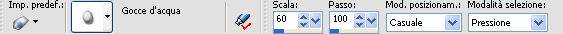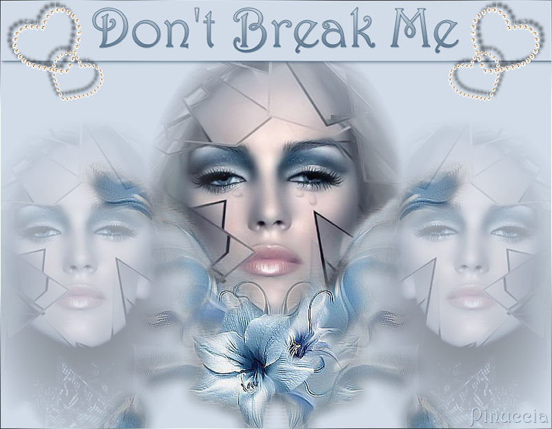 qui puoi trovare qualche risposta ai tuoi dubbi. Se l'argomento che ti interessa non è presente, ti prego di segnalarmelo. Questo tutorial è stato scritto con PSP X. Occorrente: Materiale qui Mantieni il materiale allo stato originale e non cancellare il livello del watermark. I tubes usati per questo tutorial sono di Thaiss e Silke. Filtri: Greg's Factory Output II qui FM Tile Tools qui Apri una nuova immagine trasparente 600 x 600 pixels. Livelli>Nuovo livello raster. Scegli dal tube del fiore un colore chiaro come colore di primo piano (io ho scelto #d1dce8), e un colore scuro come colore di sfondo (io ho scelto #1a3c58). Riempi il livello con il colore di primo piano.Apri il tube SKF_Flower117.07.psp, e vai a Modifica>Copia. Torna al tuo lavoro e vai a Modifica>Incolla come nuovo livello. Effetti>Effetti 3D>Sfalsa ombra, con i seguenti settaggi: ![]() Sposta il tube a destra, un po' più in basso.Effetti>Plugins>FM Tile Tools - Blend Emboss, con i settaggi standard. ![]() Apri il tube Thaiss...vg_crx.psp, e vai a Modifica>Copia. non chiuderlo perchè ti servirà ancora. Torna al tuo lavoro e vai a Modifica>Incolla come nuovo livello. Immagine>Ridimensiona, all'80%, tutti i livelli non selezionato. Sposta il tube a sinistra, un po' più in basso.Livelli>Carica/Salva maschera>Carica maschera da disco. Cerca e carica la maschera 20-20, con i seguenti settaggi: ![]() Livelli>Unisci>Unisci gruppo. Abbassa l'opacità di questo livello al 35%. Livelli>Duplica. Livelli>Unisci>Unisci giù. Dovresti avere qualcosa di simile a questo: ![]() Immagine>Dimensione tela: 900 x 600 pixels: ![]() Attiva il livello Raster 1. Livelli>Nuovo livello raster. Riempi il livello con il colore di primo piano.Livelli>Unisci>Unisci giù. ![]() Attiva il livello Gruppo - Raster 3, che è il livello superiore. Livelli>Duplica. Immagine>Rifletti. Se necessario, sposta leggermente questo duplicato in modo che rimanga un lo spazio al centro.Attiva il livello Raster 2, che è il livello del fiore. Livelli>Duplica. Immagine>Rifletti. Dovresti avere qualcosa di simile a questo. ![]() Apri ora il tube Thaiss...vg_crx.psp, e vai a Modifica>Copia. Torna al tuo lavoro e vai a Modifica>Incolla come nuovo livello. Il livello adesso si trova sopra la copia del Gruppo-Raster 3. Livelli>Carica/Salva maschera>Carica maschera da disco, cerca e carica la maschera 20-20, con i seguenti settaggi: ![]() Livelli>Unisci>Unisci gruppo. Nella paletta dei livelli trascina questo livello sotto quello del fiore. Attiva lo strumento Gomma ![]() e cancella tutti i segni neri che disturbano, in modo che il viso al centro si veda chiaramente. ![]() mentre usi la gomma, stacca spesso il mouse. In questo modo se un colpo di gomma non è corretto e vuoi tornare indietro con Modifica>Annulla Gomma, non dovrai ricominciare da capo, ma l'azione cancellerà soltanto l'ultimo tratto. Livelli>Duplica. Livelli>Nuovo livello raster. Attiva lo strumento Ornamento e seleziona Gocce d'acqua (è un ornamento standard di Windows).![]() Applica alcune lacrime sul viso al centro. Io ho usato la modalità di selezione "Pressione" e ho cambiato la scala da 30 a 60. Ho anche aggiunto un livello nuovo per ogni lacrima. In questo modo ho potuto lavorare singolarmente su ogni lacrima. Per le lacrime più piccole ho usato lo strumento Puntatore ![]() (Deformazione se si usa PSP 9), per allargarle.Abbassa l'opacità del livello (o dei livelli, se hai seguito il mio esempio) al 24%. ![]() Immagine>Dimensione tela, 900 x 700 pixels. ![]() Attiva il livello Raster 1. Attiva lo strumento Bacchetta magica ![]() ![]() e clicca sullo spazio trasparente per selezionarlo. Attiva nuovamente il livello superiore. Livelli>Nuovo livello raster. Riempi la selezione con il colore di primo piano.Effetti>Plugins>Greg's Factory II - Pool Shadow, con i settaggi standard. ![]() Selezione>Modifica>Contrai, di 1 pixel, Riempi la selezione con il colore di primo piano.Effetti>Effetti 3D>Sfalsa ombra, con i seguenti settaggi e il colore di sfondo: ![]() per impostare velocemente il colore di sfondo, clicca con il tasto destro del mouse sulla paletta del colore. Ti apparirà la schermata dei colori che hai usato di recente, e in basso a sinistra la tua paletta attuale. Clicca sulla paletta del colore di sfondo e lo avrai impostato senza dover scrivere il valore corrispondente. Attiva lo strumento Testo , scegli un font,e scrivi "Don't Break Me", o il testo che preferisci. Io ho usato il font Harrington, crea vettore, pennellata 1. ![]() Nella paletta dei materiali ho invertito i colori passando il colore scuro a colore di primo piano, e ho impostato il colore di sfondo a Gradiente, lineare, angolo 0, ripetizioni 0. Scrivi il testo e posizionalo sulla striscia in alto. Livelli>Converti in livello raster. Effetti>Effetti 3D>Sfalsa ombra: ![]() Abbassa l'opacità del livello al 70%. Apri Double Hearts~Jiggs.psp. Immagine>Ridimensiona, al 70%, tutti i livelli selezionato. Modifica>Copia. Torna al tuo lavoro e vai a Modifica>Incolla come nuovo livello. Sposta i cuori in alto a destra.Livelli>Duplica. Immagine>Rifletti. Livelli>Unisci>Unisci tutto. Immagine>Ridimensiona a 800 x 622 pixels. Selezione>Seleziona tutto. Selezione>Modifica>Contrai, di 1 pixel. Selezione>Inverti. Livelli>Nuovo livello raster. Riempi la selezione con il colore di primo piano.sicuramente troverai difficoltà a riempire uno spazio così ristretto. Ti consiglio di usare lo zoom spostando la rotellina del mouse. Se il tuo mouse non ha la rotella attiva lo strumento ![]() Selezione>Deseleziona. Effetti>Plugins>Greg's Factory Output II - Pool Shadow, con i settaggi standard. ![]() Aggiungi il tuo nome e/o il tuo watermark. Livelli>Unisci>Unisci tutto. Salva in formato jpg. L'autrice del tutorial ha usato il font Prints Charming. Sono riuscita a trovare il font dopo aver completato il lavoro. L'ho aggiunto al materiale. Ecco il testo con questo font: ![]() ![]() Se hai problemi o dubbi, o trovi un link non funzionante, o anche so