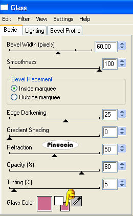 qui puoi trovare qualche risposta ai tuoi dubbi. Se l'argomento che ti interessa non è presente, ti prego di segnalarmelo. Questo tutorial è stato scritto con PSP X2, ma può essere eseguito anche con le altre versioni di PSP. Per tradurlo, ho usato PSP X. ©Biene - tutti i diritti riservati. Il © della traduzione è mio. Occorrente: A scelta due immagini: un'auto e una donna. Il resto del materiale qui Per il mio esempio ho usato immagini http:whizzywhizzer.deviantart.com ©Whizzy Whizzer Le immagini di Whizzy Whizzer non si possono usare senza il permesso dell'autore, che ringrazio. Un ringraziamento ai creatori di tubes dei vari gruppi cui appartengo. Il watermark di ognuno è inserito nei tubes. Per favore, rispetta il lavoro degli autori: non cambiare il nome del file e non rimuovere il watermark. Il © appartiene agli artisti originali. Filtri: Eye Candy 4 - Glass qui ![]() Metti le maschere Conte e 20-20.bmp nella cartella Maschere. Scegli un colore dalle tue immagini e impostalo come colore di primo piano (il mio #ce6a8d). Imposta il colore di sfondo con il bianco. Apri una nuova immagine bianca 650 x 450 pixels. ![]() Apri la tua prima immagine - l'automobile, che dovrebbe avere una larghezza di circa 600 pixels. Ridimensionala quanto necessario. Modifica>Copia. Torna alla tua immagine bianca e vai a Modifica>Incolla come nuovo livello. Sposta l'immagine un po' più a sinistra.Livelli>Carica/Salva maschera>Carica maschera da disco. Cerca e carica la maschera conte: ![]() Livelli>Unisci>Unisci gruppo. Apri la tua seconda immagine - la donna, che dovrebbe avere un'altezza di circa 450 pixels. Modifica>Copia. Torna al tuo lavoro e vai a Modifica>Incolla come nuovo livello. Sposta l'immagine a destra.Livelli>Carica/Salva maschera>Carica maschera da disco. Cerca e carica la maschera 20-20, con i settaggi precedenti. ![]() Livelli>Unisci>Unisci giù. Per visualizza meglio il tuo lavoro ingrandiscilo di almeno il 150%, attivando lo zoom o usando la rotellina del mouse.Se a sinistra vedi il bordo netto dell'immagine, ![]() attiva lo strumento Gomma , dimensione 135, opacità 17% circa,e cancella la parte chiara di questo bordo. Livelli>Duplica. Attiva il livello dell'auto. Controlla se ci sono tracce dell'auto sul viso e sul corpo della donna. ![]() In questo caso, attiva nuovamente lo strumento Gomma , abbassa l'opacità al 10% circa,e cancella questi segni. Livelli>Unisci>Unisci tutto. Immagine>Aggiungi bordatura, 1 pixel, simmetriche, con il colore di primo piano. Immagine>Aggiungi bordatura, 21 pixels, simmetriche, con il colore di sfondo. Immagine>Aggiungi bordatura, 2 pixels, simmetriche, con il colore di primo piano. Aggiungi eventualmente un tube accessorio di un cuore. Colorizza il tube adattandolo ai colori del tuo lavoro (sul Viraggio vedi qui). Posiziona questo tube in alto a sinistra.Inverti i colori nella paletta dei materiali in modo che il colore di primo piano passi a colore di sfondo. Attiva lo strumento Testo e scegli un font.Per il mio esempio ho usato il font Bickham Script Fancy - dimensione 72 - antialias spiana. ![]() Scrivi il tuo testo. Oggetti>Allinea>Centra orizz. nella tela. Livelli>Converti in livello raster. Livelli>Duplica. Effetti>Plugins>Eye Candy 4000 - Glass: imposta Glass Color con il colore di primo piano (cliccando sulla piccola paletta corrispondente a questo colore). ![]() Livelli>Duplica. Regola>Tonalità e saturazione>Viraggio. ![]() Abbassa l'opacità di questo livello al 30%. Effetti>Effetti 3D>Sfalsa ombra, con il colore nero. ![]() Attiva il livello originale del testo. Cambia la modalità di miscelatura di questo livello in Luminanza (esistente). Effetti>Effetti 3D>Sfalsa ombra, con i settaggi precedenti. ![]() Attiva nuovamente il livello superiore. Aggiungi il tuo nome e/o il tuo watermark, senza dimenticare eventuali copyright delle immagini usate. Livelli>Unisci>Unisci tutto e salva in formato jpg. Se hai problemi o dubbi, o trovi un link non funzionante, o anche soltanto per un saluto, scrivimi.