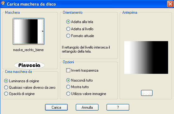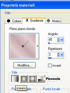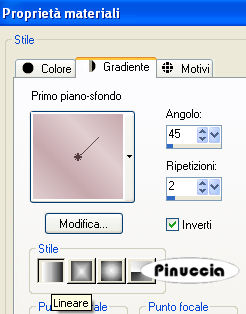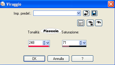 qui puoi trovare qualche risposta ai tuoi dubbi. Se l'argomento che ti interessa non è presente, ti prego di segnalarmelo. Questo tutorial è stato scritto con PSP X2, ma può essere eseguito anche con le altre versioni di PSP. Per tradurlo, l'ho eseguito con PSP X. Occorrente: Materiale qui I tubes che ho usato sono di Jet, Caro, M.LouLou e Gini. Rispetta il lavoro degli autori e mantieni inalterati i tubes. Filtri: FM Tile Tools - Blend Emboss qui Metti le maschere nella cartella Maschere. Metti il pennello qb_wordart_dreams.PspBrush nella cartella Pennelli. Attenzione, il pennello è composto da due files che non devono essere separati. Vedi gli appunti sui pennelli qui. Apri una nuova immagine trasparente 600 x 450 pixels. Imposta il colore di primo piano con #c6a8ad, e il colore di sfondo con #e0ced0. Riempi l'immagine trasparente con il colore di primo piano.Livelli>Nuovo livello raster. Attiva lo strumento Selezione ,clicca sull'icona selezione personalizzata ![]() e imposta i seguenti settaggi. ![]() Passa il colore di primo piano a Gradiente di primo piano/sfondo, con i seguenti settaggi: ![]() Riempi la selezione con il gradiente.Selezione>Deseleziona. Apri bouquet23.psp e vai a Modifica>copia. Torna al tuo lavoro e vai a Modifica>Incolla come nuovo livello. Livelli>Carica/Salva maschera>Carica maschera da disco. Cerca e carica la maschera 20-20.bmp. ![]() Livelli>Unisci>Unisci gruppo. Immagine>Ruota per gradi - 90 gradi a sinistra: ![]() Sposta il tube contro il bordo a sinistra.Livelli>carica/salva maschera>Carica maschera da disco. Cerca e carica la maschera maske_rechts_biene.jpg: ![]() Livelli>Unisci>Unisci gruppo. Ripeti Livelli>Carica/salva maschera>Carica maschera e clicca Carica per caricare nuovamente la maschera. Livelli>Unisci>Unisci gruppo. Livelli>Duplica. Immagine>Rifletti. Livelli>Unisci>Unisci giù. Effetti>Plugins>FM Tile Tools - Blend Emboss, con i settaggi standard. ![]() Abbassa l'opacità di questo livello all'83%. Apri LaceRing_MistedByGini_07-15-06.psp, e vai a Modifica>copia. Torna al tuo lavoro e vai a Modifica>Incolla come nuovo livello. Immagine>Rifletti. Immagine>Ridimensiona, all'85%, tutti i livelli non selezionato. Sposta l'anello nell'angolo in alto a sinistra.Cambia la modalità di miscelatura di questo livello in Schiarisci. Regola>Messa a fuoco>Metti a fuoco. Apri caro30261.psp, e vai a Modifica>copia. Torna al tuo lavoro e vai a Modifica>Incolla come nuovo livello. Immagine>Rifletti. Sposta il tube a destra.Cambia la modalità di miscelatura di questo livello in Sovrapponi. Livelli>Disponi>Sposta giù. Attiva nuovamente il livello superiore. Apri jet-woman04-augustus-200811.psp. Nel mio esempio, il colore delle foglie nei capelli della donna è stato cambiato. Se vuoi lasciare il colore come sta, salta il passaggio successivo. Usando sulla tastiera la combinazione di tasti shift(maiuscola)+D duplica il tube e chiudi l'originale. Attiva lo strumento Bacchetta magica , tolleranza 15 (questo settaggio è indicativo; se necessario puoi aumentarlo), sfumatura 0:Clicca sulle foglie rosse intorno ai capelli della donna - anche più volte se necessario - per selezionarle. ![]() Regola>Tonalità e saturazione>Viraggio: ![]() Selezione>Deseleziona. Modifica>copia. Torna al tuo lavoro e vai a Modifica>Incolla come nuovo livello. Immagine>Ridimensiona, all'80%, tutti i livelli non selezionato. Regola>Messa a fuoco>Metti a fuoco. Sposta il tube un po' più in basso.Livelli>Duplica. Livelli>Disponi>Sposta giù. Effetti>Effetti di distorsione>Vento - da destra, intensità 100. ![]() Regola>Sfocatura>sfocatura gaussiana - raggio 20. ![]() Cambia la modalità di miscelatura di questo livello in Colore (esistente). Attiva lo strumento Spostamento e usando la freccia a sinistra della tastiera, clicca 10 volte.sull'uso delle frecce della tastiera applicato allo strumento Spostamento vedi qui Attiva nuovamente il livello superiore. Effetti>Effetti 3D>Sfalsa ombra, con i seguenti settaggi, colore nero: ![]() Livelli>Unisci>Unisci tutto. Immagine>Aggiungi bordatura, 1 pixel, simmetriche, con il colore #bd8b94. Selezione>Seleziona tutto. Immagine>Aggiungi bordatura, 20 pixels, simmetriche, con il colore bianco. Cambia i settaggi del gradiente: ![]() Selezione>Inverti. Riempi la selezione con il gradiente.Mantieni selezionato. Effetti>Effetti di trama>Veneziana: ![]() Selezione>Inverti. Effetti>Effetti 3D>Sfalsa ombra, con i seguenti settaggi, colore nero: ![]() Ripeti l'Effetto Sfalsa ombra, invertendo i valori verticale e orizzontale: ![]() Selezione>Deseleziona. Immagine>Aggiungi bordatura, 1 pixel, simmetriche, con il colore #bd8b94. Imposta il colore di primo piano con #a6626f. Livelli>Nuovo livello raster. Attiva lo strumento Pennello ![]() cerca e seleziona il pennello qb_wordart_dreams.PspBrush, dimensione 260: ![]() Applica il pennello in basso a destra. Cambia la modalità di miscelatura di questo livello in Moltiplica. Aggiungi il tuo nome e/o il tuo watermark. Livelli>Unisci>Unisci tutto e salva in formato jpg. ![]() Se hai problemi o dubbi, o trovi un link non funzionante, o anche soltanto per un saluto, scrivimi 10 Settembre 2008 |