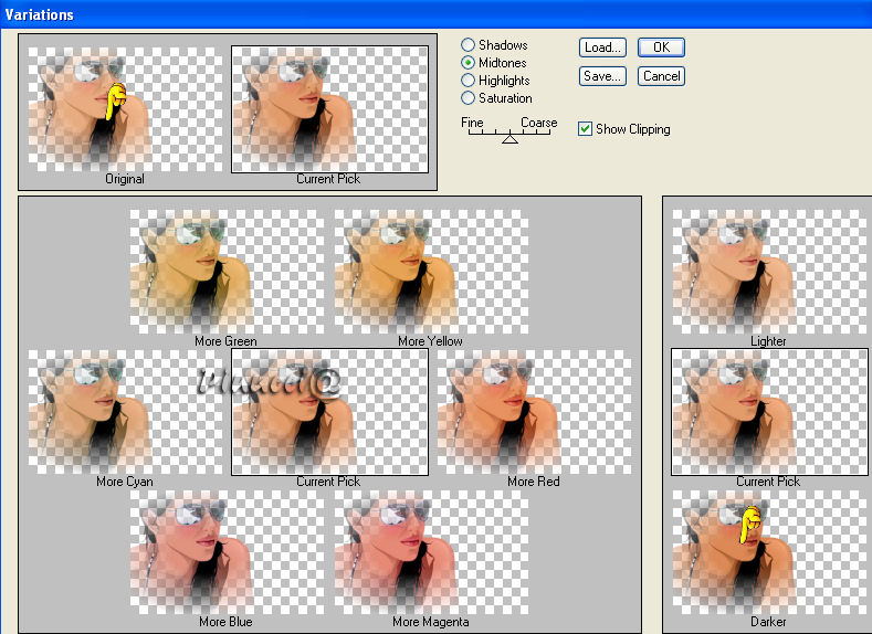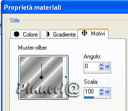 qui puoi trovare qualche risposta ai tuoi dubbi. Se l'argomento che ti interessa non è presente, ti prego di segnalarmelo. Questo tutorial è stato scritto con PSP X2, ma può essere eseguito anche con le altre versioni di PSP. Per tradurlo, ho usato PSP X. ©Biene - tutti i diritti riservati. Il © della traduzione è mio. Occorrente: Un tube a scelta. Il resto del materiale qui Il tube che ho usato per il mio esempio è di K@rine. Il tube dello sfondo è di Bibiche. Il pennello KZ_Moments è ricavato da un wordart di http://www.linda-ohwhatfun.blogspot.com/ Linda Metti il pennello con il suo Script nella cartella Pennelli. Un ringraziamento ai creatori di tubes dei vari gruppi cui appartengo. Il watermark di ognuno è inserito nei tubes. Per favore, rispetta il lavoro degli autori: non cambiare il nome del file e non rimuovere il watermark. Il © appartiene agli artisti originali. Filtri: Adjust - Variations qui Xero - Porcelain qui Imposta il colore di primo piano con #3e6288. Apri il tube ababibichescenery080.psp. Duplicalo usando la combinazione di tasti maiuscola+D e chiudi l'originale. Continua a lavorare sulla copia. Elimina il livello del watermark. Attiva il livello del tube e sposta l'immagine un po' più a destra.![]() Livelli>Duplica. Livelli>Unisci>Unisci visibile. Duplica questa immagine con maiuscola+D. Immagine>Ridimensiona, a 700 x 451 pixels. Metti da parte questa immagine e continua a lavorare su quella più grande. Apri il tuo tube e vai a Modifica>Copia. Torna al tuo lavoro e vai a Modifica>Incolla come nuovo livello. Immagine>Ridimensiona, se e quanto necessario. Sposta il tube a sinistra.Livelli>Duplica. Effetti>Plugins>Adjust - Variations: 1 clic su Original per annullare eventuali precedenti settaggi memorizzati dal filtro, 1 clic su Darker e ok. ![]() Abbassa l'opacità di questo livello al 94%. Effetti>Plugins>Xero - Porcelain, con i settaggi standard. ![]() Livelli>Unisci>Unisci visibile. Selezione>Seleziona tutto. Selezione>Modifica>Contrai - 1 pixel. Selezione>Inverti. Livelli>Nuovo livello raster. Riempi la selezione con il colore di primo piano.Livelli>Nuovo livello raster. Passa il colore di sfondo a Motivi e seleziona il motivo argento. ![]() Riempi la selezione con questo motivo (tasto destro del mouse).Selezione>Deseleziona. Cambia la modalità di miscelatura di questo livello in Sovrapponi. Livelli>Unisci>Unisci visibile. Immagine>Ridimensiona, al 90%, tutti i livelli selezionato. Regola>Messa a fuoco>Metti a fuoco. Selezione>Seleziona tutto. Immagine>Dimensione tela - 699 x 464. ![]() Selezione>Innalza selezione a livello. Selezione>Deseleziona. Effetti>Effetti 3D>Sfalsa ombra, con il colore nero. ![]() Ripeti l'Effetto Sfalsa ombra, cambiando verticale e orizzontale con -2. Attiva nuovamente il livello inferiore. Selezione>Seleziona tutto. Attiva la piccola immagine che hai messo da parte prima e vai a Modifica>Copia. Torna al tuo lavoro e vai a Modifica>Incolla nella selezione. Selezione>Deseleziona. Livelli>Duplica. Immagine>Rifletti. Attiva lo strumento Gomma , opacità 100,e cancella il lato sinistro del bordo. ![]() Attiva nuovamente il livello superiore. Livelli>Nuovo livello raster. Imposta il colore di primo piano con #77acda. Attiva lo strumento Pennello ![]() cerca e seleziona il pennello Kz_moment_wa, dimensione 340, e applicalo in basso a destra cliccando con il tasto sinistro del mouse per usare il colore di primo piano. Cambia la modalità di miscelatura di questo livello in Luce netta. Livelli>Nuovo livello raster. Selezione>Seleziona tutto. Selezione>Modifica>Contrai - 1 pixel. Selezione>Inverti. Imposta nuovamente il colore di primo piano con il colore iniziale #3e6288. Riempi la selezione con il colore di primo piano.Livelli>Nuovo livello raster. Passa il colore di sfondo a Motivi e seleziona il motivo argento. ![]() Riempi la selezione con questo motivo (tasto destro del mouse).Selezione>Deseleziona. Cambia la modalità di miscelatura di questo livello in Sovrapponi. Aggiungi il tuo nome e/o il tuo watermark, senza dimenticare eventuali copyright delle immagini usate. Livelli>Unisci>Unisci tutto e salva in formato jpg. Se hai problemi o dubbi, o trovi un link non funzionante, o anche soltanto per un saluto, scrivimi.