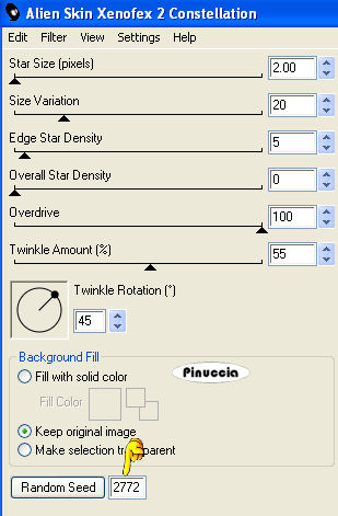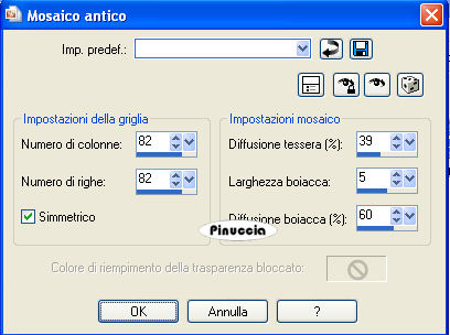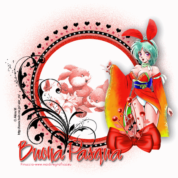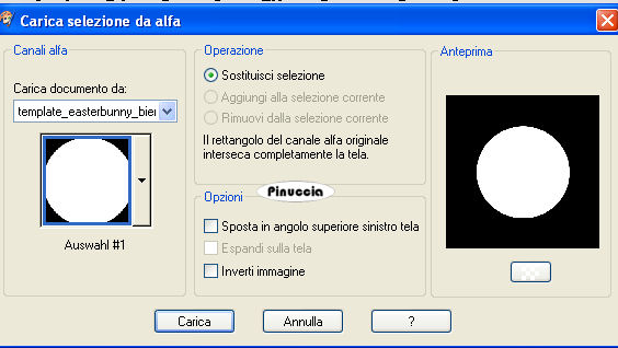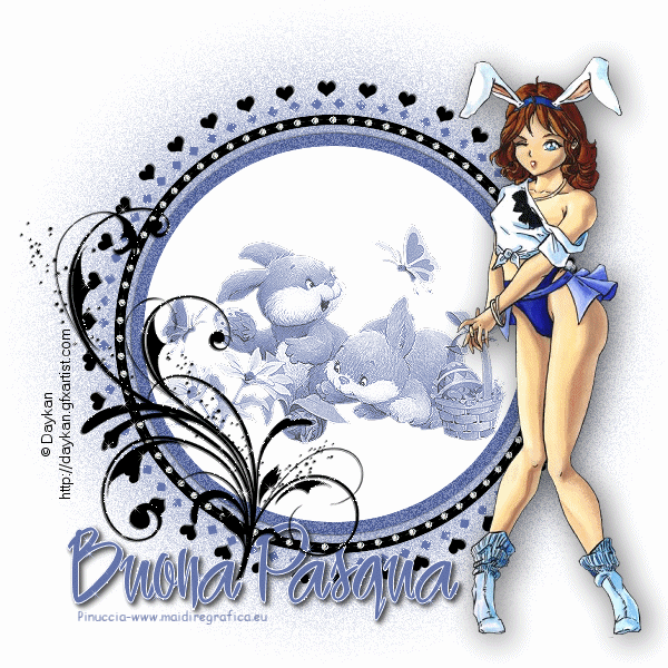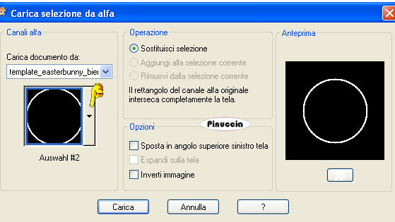 qui puoi trovare qualche risposta ai tuoi dubbi. Se l'argomento che ti interessa non è presente, ti prego di segnalarmelo. Questo tutorial è stato scritto con PSP X2, ma può essere eseguito anche con le altre versioni di PSP. Per tradurlo, ho usato PSP X. ©Biene - tutti i diritti riservati. Il © della traduzione è mio. Occorrente: Materiale qui Un tube a scelta. Per il mio esempio ho usato un tube http://www.twin.ne.jp/~akr_m/" ©Akira M L'elemento scrap è di Sandi e il doodle è di Cajun Designz. Non conosco l'autore del tube BunniesEggHunt.psp. Il resto del materiale è ©Biene. Un ringraziamento ai creatori di tubes dei vari gruppi cui appartengo. Il watermark di ognuno è inserito nei tubes. Per favore, rispetta il lavoro degli autori: non cambiare il nome del file e non rimuovere il watermark. Il © appartiene agli artisti originali. Filtri: Alien Skin Xenofex 2.0 - Constellation qui Ti servirà anche Animation Shop qui ![]() Metti la maschera 20-20 nella cartella maschera e apri il resto del materiale in PSP. Imposta il colore di primo piano con un colore chiaro scelto dal tube: il mio #d03650, e il colore di sfondo con il bianco. Apri il template di Biene template_easterbunny_biene.pspimage. Questo template - che sarà la base del tuo lavoro - non è vuoto, ma contiene le selezioni salvate sul canale alfa. Riempi l'immagine trasparente con il colore bianco.Livelli>Nuovo livello raster. Riempi con il colore di primo piano.Livelli>Carica/Salva maschera>Carica maschera da disco. Cerca e carica la maschera 20-20. ![]() Livelli>Unisci>Unisci gruppo. Immagine>Ridimensiona, al 90%, tutti i livelli non selezionato. Effetti>Effetti di trama>Mosaico antico. ![]() Livelli>Carica/Salva maschera>Carica maschera da disco. Carica nuovamente la maschera 20-20, con i settaggi precedenti. Livelli>Unisci>Unisci gruppo. Livelli>Duplica. Livelli>Unisci>Unisci giù. Livelli>Nuovo livello raster. Selezione>Carica/Salva selezione>Carica selezione da canale alfa. La prima selezione Auswahl#1 è già presente, devi soltanto cliccare Carica. ![]() Riempi la selezione con il colore di primo piano.Selezione>Deseleziona. Selezione>Carica/Salva selezione>Carica selezione da canale alfa. apri il menu e seleziona Auswahl#2: ![]() Imposta il colore di sfondo con il nero, e riempi la selezione con questo colore (tasto destro del mouse).Attiva il livello sottostante, e premi sulla tastiera il tasto CANC. Selezione>Deseleziona. Effetti>Effetti 3D>Sfalsa ombra, con il colore nero. ![]() Ripeti l'Effetto Sfalsa ombra, invertendo i valori verticale e orizzontale. ![]() Rinomina questo livello "Disturbo". Livelli>Duplica - 2 volte - e attiva nuovamente il livello "disturbo". Regola>Aggiungi/Rimuovi disturbo>Aggiungi disturbo. ![]() Attiva il livello della copia di disturbo. Ripeti Aggiungi disturbo, cambiando il disturbo con 35. Chiudi questo livello e attiva il livello della seconda copia. Ripeti Aggiungi disturbo, portando il disturbo a 40. Chiudi questo livello e attiva il livello superiore. Livelli>Nuovo livello raster. Selezione>Carica/Salva selezione>Carica selezione da canale alfa. Carica la selezione Auswahl#3. ![]() Selezione>Modifica>Contrai - 1 pixel. Riporta il colore di sfondo al colore bianco, e riempi la selezione con questo colore (Tasto destro del mouse).Selezione>Deseleziona. Apri il tube di Biene diamondcircle_biene.pspimage e vai a Modifica>Copia. Torna al tuo lavoro e vai a Modifica>Incolla come nuovo livello. Il tube sarà perfettamente selezionato nel bordo del cerchio. Effetti>Effetti 3D>Sfalsa ombra, con il colore nero. ![]() Attiva lo strumento Forme predefinite-ellisse ![]() larghezza 10; linea di stile Diamonds1. Chiudi il colore di sfondo. Traccia un bel cerchio sull'immagine. Considera che il cerchio deve essere di poco superiore al cerchio con i diamantini. Inizia a tracciare il cerchio, tenendo premuto il tasto Ctrl, dal centro dell'immagine (facilmente calcolabile essendo un quadato di 600 x 600 pixels). (vedi il mio esempio per orientarti). ![]() Quando hai fatto: Oggetti>Allinea>Centra nella tela. Livelli>Converti in livello raster. Immagine>Capovolgi. Rinomina questo livello "Xeno". Livelli>Duplica - 2 volte - e attiva nuovamente il livello "xeno". Effetti>Plugins>Alien Skin Xenofex 2.0 - Constellation. ![]() Attiva il livello copia di Xeno. Ripeti l'Effetto Constellation, con gli stessi settaggi, ma cliccando una volta su Random Seed. Chiudi questo livello e attiva il livello della seconda copia. Ripeti l'Effetto Constellation, cliccando su Random Seed. Chiudi anche questo livello. Apri Heartsdecocircle_biene.pspimage. Se intendi colorare i cuori, attiva il livello Raster 1 (e poi cambierai il colore dei cuori). Se invece preferisci i cuori neri, attiva il livello Raster 2. Modifica>Copia. Torna al tuo lavoro e vai a Modifica>Incolla come nuovo livello. Per colorare i cuori, atttiva lo strumento Pennello Trasforma in destinazione e passa il mouse uniformemente sopra l'anello (assicurati che il colore scelto sia impostato come colore di primo piano.Effetti>Effetti 3D>Sfalsa ombra, con il colore nero. ![]() Attiva nuovamente il livello Raster 5. Apri BunniesEggHunt.psp e vai a Modifica>Copia. Torna al tuo lavoro e vai a Modifica>Incolla come nuovo livello. Immagine>Ridimensiona, al 59%, tutti i livelli non selezionato. Regola>Tonalità e Saturazione>Viraggio. ![]() Effetti>Effetti di bordo>Aumenta. Abbassa l'opacità di questo livello in 71%. Apri il tuo tube e vai a Modifica>Copia. Torna al tuo lavoro e vai a Modifica>Incolla come nuovo livello. Sposta il tube a destra.Effetti>Effetti 3D>Sfalsa ombra, con il colore nero. ![]() puoi regolare i settaggi dello Sfalsa ombra, secondo il tuo tube Apri bows149-sandi1.psp. Attiva il livello Raster 2 e vai a Modifica>Copia. Torna al tuo lavoro e vai a Modifica>Incolla come nuovo livello. Immagine>Capovolgi. Immagine>Ridimensiona, all'85%, tutti i livelli non selezionato. Regola>Tonalità e saturazione>Viraggio, con i settaggi precedenti.