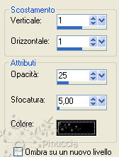 Effetti>Effetti 3D>sfalsa ombra, con i seguenti settaggi, colore nero.