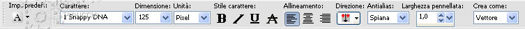 Per il mio esempio ho usato il font 1SnappyDNA, dimensione 125, antialias, spiana, pennellata 1: