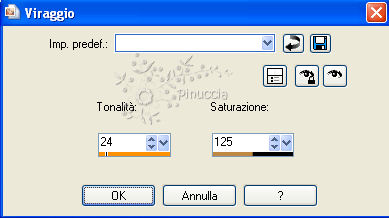 Regola>Tonalità e saturazione>Viraggio, con i settaggi precedenti.