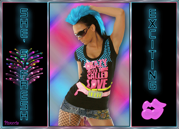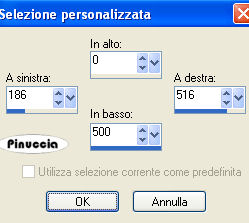 qui puoi trovare qualche risposta ai tuoi dubbi. Se l'argomento che ti interessa non è presente, ti prego di segnalarmelo. Questo tutorial è stato scritto con PSP X2, ma può essere eseguito anche con le altre versioni di PSP. Per tradurlo, l'ho eseguito con PSP X. Occorrente: Materiale qui Il tube che ho usato è di Jet Rispetta il lavoro degli autori e mantieni inalterati i tubes. Apri il Motivo Muster-silber e minimizzalo nella tua area di lavoro. Lo troverai nella lista dei motivi disponibili quando ti servirà. Ti servirà anche Animation Shop qui Imposta il colore di primo piano con #ff6291, e il colore di sfondo con #3bb6d8. Passa il colore di primo piano a Gradiente di primo piano/sfondo: ![]() Apri una nuova immagine trasparente 700 x 500 pixels. 1. Attiva lo strumento Selezione , rettangolo, sfumatura 0,clicca sull'icona Selezione personalizzata ![]() e imposta i seguenti settaggi: ![]() Riempi la selezione con il gradiente.Selezione>Deseleziona. 2. Livelli>duplica. Immagine>Capovolgi. Cambia la modalità di miscelatura di questo livello in Tonalità. sperimenta tranquillamente, tra le modalità di miscelatura, quella che ti soddisfa di più. 3. Livelli>nuovo livello raster. Passa il colore di primo piano a Motivi e seleziona il motivo Muster-Silber: ![]() Attiva lo strumento Selezione personalizzata con i settaggi precedenti.![]() 4. Riempi la selezione con il motivo argento.Selezione>Modifica>Contrai, di 2 pixels. Premi sulla tastiera il tasto CANC ![]() 5. Mantieni selezionato. Riporta il colore di primo piano a Gradiente e riempi la selezione con il gradiente.Selezione>modifica>Contrai, di 2 pixels. Premi sulla tastiera il tasto CANC. 6. Mantieni ancora selezionato. Imposta il colore di primo piano con il nero (#000000), e riempi la selezione con il nero.Selezione>Modifica>Contrai, di 2 pixels. Premi sulla tastiera il tasto CANC. Selezione>Deseleziona. 7. Attiva lo strumento Bacchetta magica sfumatura e tolleranza 0,![]() e clicca sulla parte trasparente a sinistra per selezionarla. Ripeti i punti 4 e 5. Selezione>Deseleziona. 8. Livelli>Duplica. Immagine>Rifletti. Livelli>Unisci>Unisci giù. 9. Attiva il livello Raster 2. Attiva ancora una volta la Bacchetta magica ![]() e clicca sulle parti trasparenti a destra e a sinistra. Livelli>Nuovo livello raster. Riempi entrambe le selezioni con il colore nero.Selezione>Deseleziona. 10. Attiva il livello copia di Raster 1. Apri jet-woman26-februari-20081.psp, e vai a Modifica>Copia. Torna al tuo lavoro e vai a Modifica>Incolla come nuovo livello. 11. Immagine>Ridimensiona, al 75%, tutti i livelli non selezionato. 12. Sposta il tube un po' più in basso.13. Effetti>Effetti 3D>Sfalsa ombra: ![]() 14. Attiva il livello superiore. Apri accents_023_1_.pspimage. Posizionati sul livello Layer4 e scegli il colore delle labbra. Attiva lo strumento Selezione a mano libera e seleziona le labbra scelte.Dopo esserti posizionato sul livello ti consiglio, per vedere meglio, di andare a Livelli>Visualizza>Solo corrente: ![]() Modifica>Copia. non chiuderlo, perchè ti servirà ancora. Torna al tuo lavoro e vai a Modifica>Incolla come nuovo livello. Sposta la bocca sulla striscia nera a destra, in basso.15. Attiva nuovamente accents_023. Attiva il livello Layer3 e vai a Modifica>Copia. Torna al tuo lavoro e vai a Modifica>Incolla come nuovo livello. Sposta i cuori al centro della striscia nera a sinistra.16. Attiva lo strumento Testo ,Imposta il colore di sfondo con il nero. Passa il colore di sfondo blu a colore di primo piano. Seleziona il font Alien Encounters Solid Regular - dimensione 48 - pennellata 2 - direzione verticale: ![]() Scrivi un testo - come nel mio esempio o quello che preferisci - e posizionalo sulla striscia a sinistra. 17. Oggetti>Allinea>Centra vert. nella tela. Livelli>Converti in livello raster. 18. Effetti>Effetti 3D>Sfalsa ombra, con i seguenti settaggi, con il colore blu: ![]() Ripeti l'Effetto Sfalsa ombra, ma cambiando verticale e orizzontale a -10. 19. Scrivi il secondo testo e posizionalo sulla striscia a destra. Livelli>Converti in livello raster. Effetti>Effetti 3D>Sfalsa ombra, con i settaggi del punto 18. Forse troverai un po' noiosa la serie dei passaggi successivi, ma è necessaria per poter aggiungere i bordi senza unire i livelli. Per creare l'animazione (vedi il punto 2) ti servirà il livello Copia di Raster 1, al quale applicare diverse modalità di miscelatura. 21. Livelli>Nuovo livello raster. Selezione>Seleziona tutto. Immagine>Dimensione tela - 702 x 502 pixels. Selezione>inverti. Riempi la selezione con il nero. 22. Selezione>Seleziona tutto. Immagine>Dimensione tela - 706 x 506 pixels. Selezione>inverti. Riempi la selezione con il gradiente del punto 1.23. Selezione>Seleziona tutto. Immagine>Dimensione tela - 710 x 510 pixels. Selezione>Inverti. Riempi la selezione con il motivo argento.24. Selezione>Seleziona tutto. Immagine>Dimensione tela - 712 x 512 pixels. Selezione>inverti. Riempi la selezione con il nero.Selezione>Deselezona. Non dimenticare il tuo watermark. ![]() Se non vuoi creare l'animazione, salva in formato jpg. Se vuoi creare l'Animazione Modifica>Copia Unione. Apri Animation Shop e vai a Modifica>Incolla>Incolla come nuova animazione. Torna in PSP. Attiva il livello Copia di Raster 1. Cambia la modalità di miscelatura di questo livello a tuo piacimento. Modifica>Copia unione. Torna in Animation Shop e vai a Modifica>Incolla>Incolla dopo il fotogramma corrente. Di nuovo in PSP. Cambia nuovamente la modalità di miscelatura del livello copia di Raster 1. Modifica>Copia Unione. Per finire in Animation Shop: Modifica>Incolla>Incolla dopo il fotogramma corrente. Controlla il risultato cliccando su Visualizza ![]() Se l'animazione è troppo veloce: Modifica>Seleziona tutto. Animazione>Proprietà fotogramma, e imposta la velocità a tuo piacimento; aumentando il valore, diminuisce la velocità. Nel mio esempio il settaggio è 30. ![]() ![]() Se hai problemi o dubbi, o trovi un link non fun